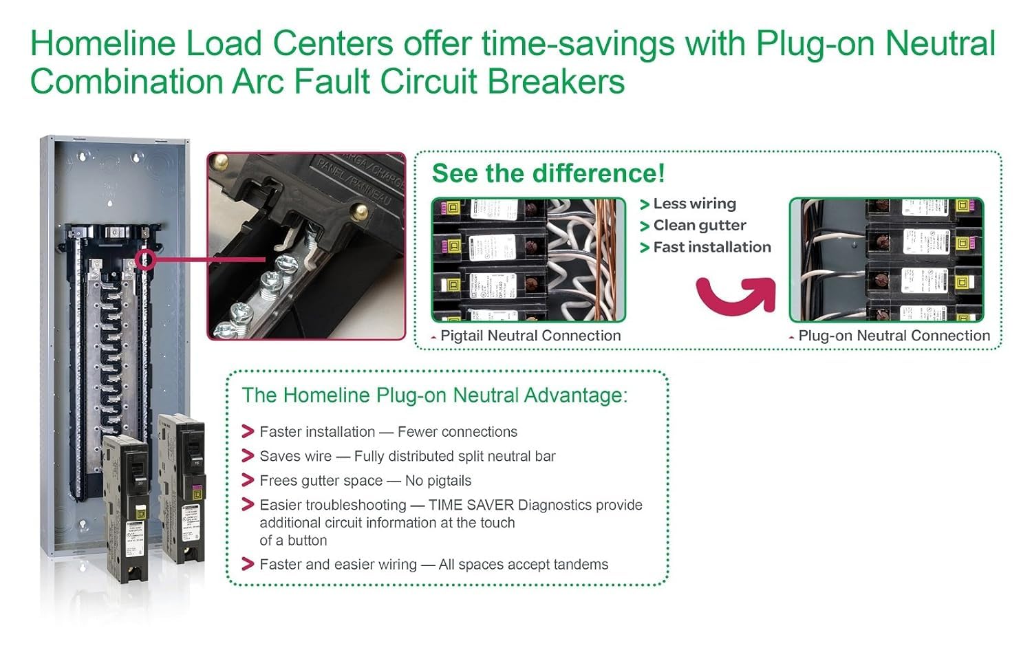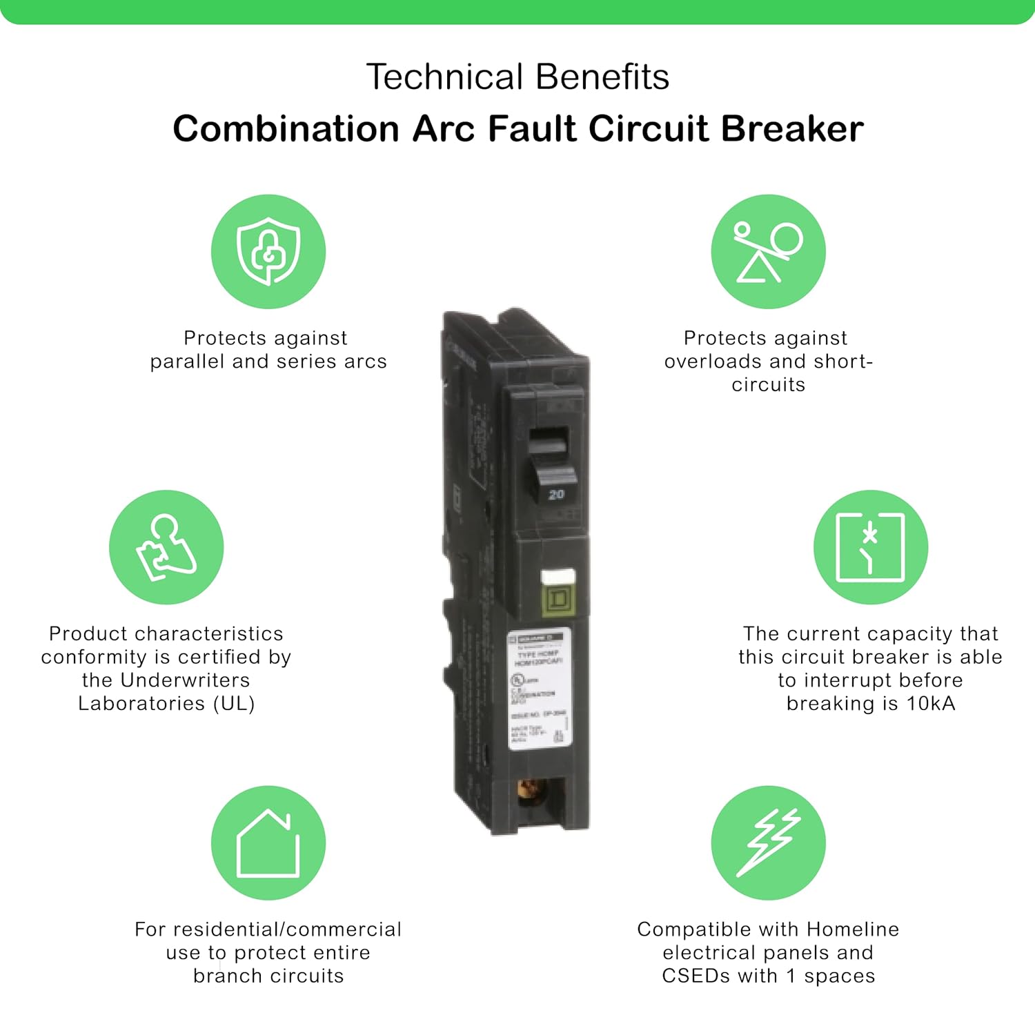 About this itemnHomeline, 20A Single Pole Circuit Breakern1 Space Per PolenPlug On Neutral Combination Arc Fault Circuit Interrupters CAFInVoltage: 120V, BulknHomeline 20 Amp single-pole plug-on-neutral combination AFCI circuit breakernTo help further save our customer’s time and money, the Square D brand CAFI circuit breakers are now equipped with time-saver diagnosticsnInnovative neutral connection design leads to fewer connections and faster installation, no pigtails which frees up gutter spacenShow more