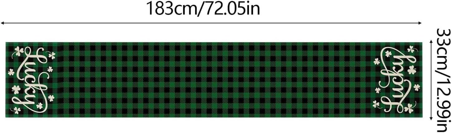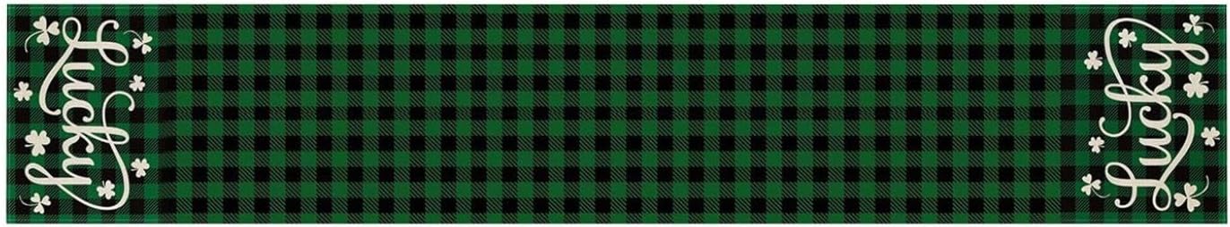 About this itemnClothnFestive St. Patrick’s Day Design: Features a charming green and white plaid shamrock pattern, bringing a cheerful holiday vibe to your tablenPerfect Size for Any Space: Measuring 72 x 13 inches, it fits most dining tables, kitchen counters, or mantelpieces effortlesslynHigh-Quality Material: Made with durable and soft fabric that is easy to clean, ensuring it stays vibrant and functional for yearsnVersatile Decoration: Ideal for home, parties, or celebrations, adding a touch of festive charm to your dining or living areanThoughtful Seasonal Gift: A great way to surprise friends or family, making their St. Patrick’s Day celebrations even more special