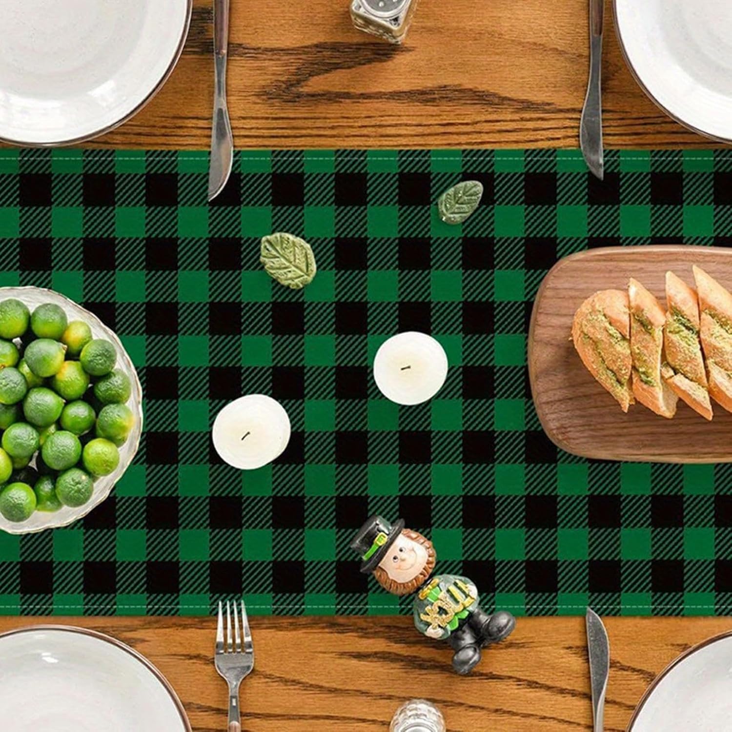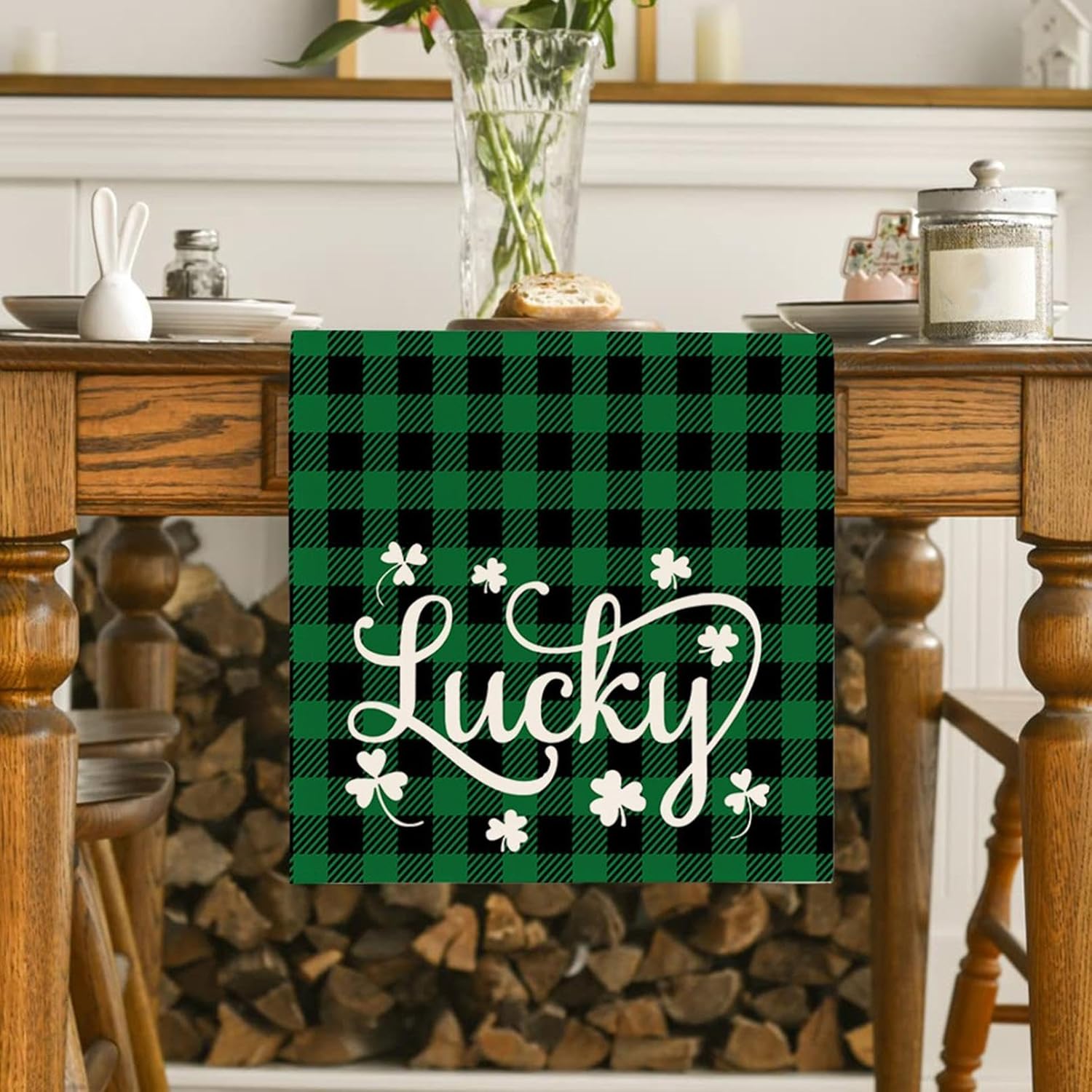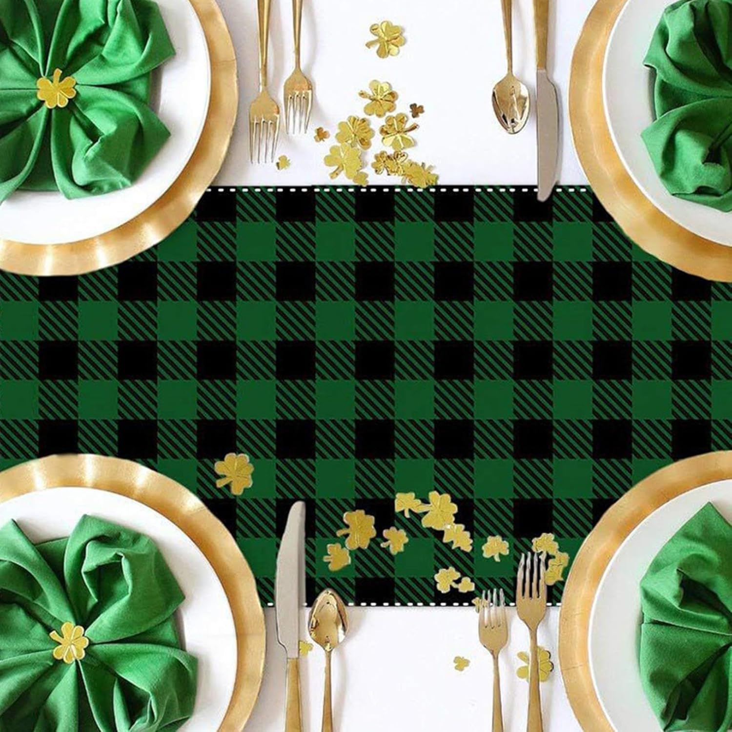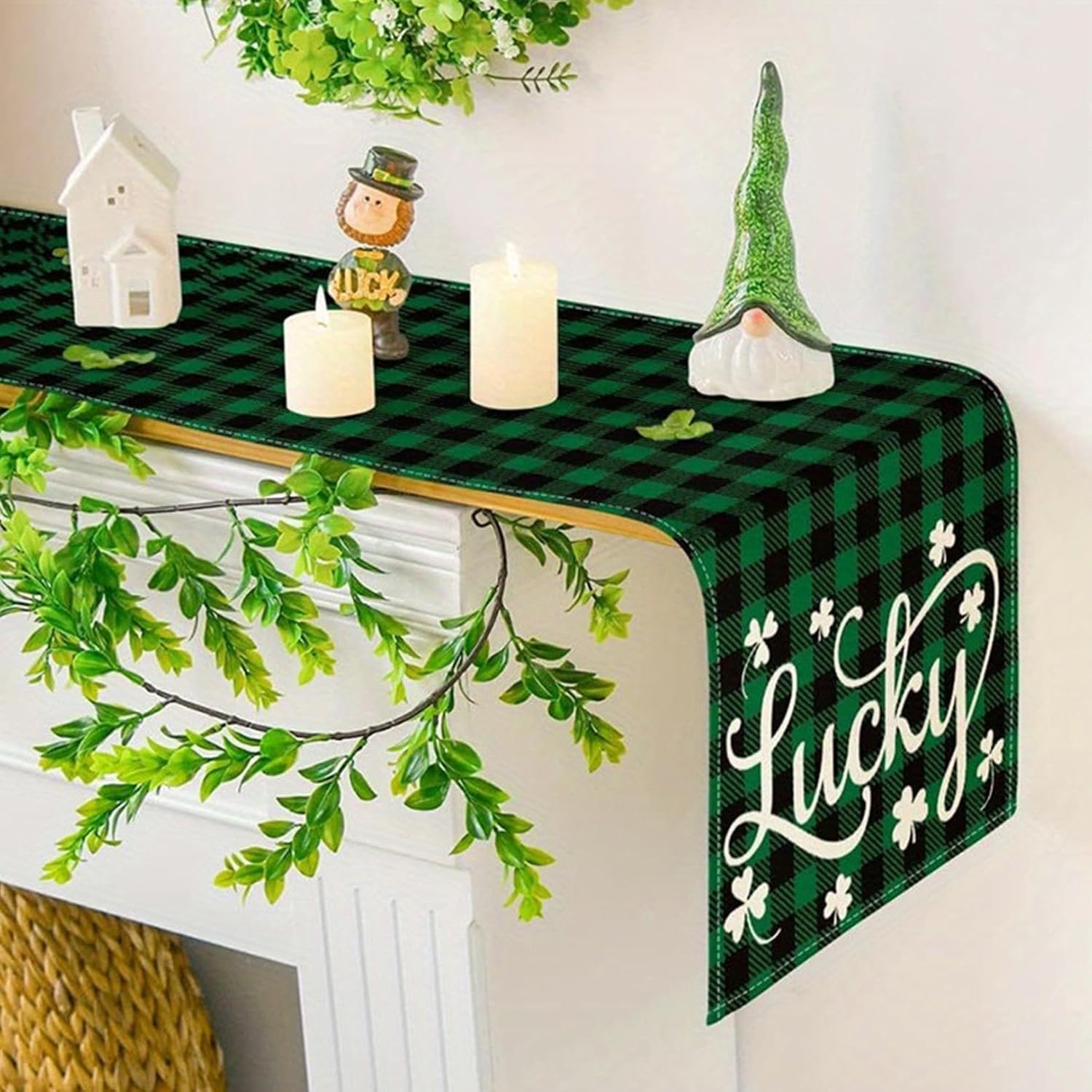 About this itemnClothnFestive St. Patrick’s Day Design: Features a charming green and white plaid shamrock pattern, bringing a cheerful holiday vibe to your tablenPerfect Size for Any Space: Measuring 72 x 13 inches, it fits most dining tables, kitchen counters, or mantelpieces effortlesslynHigh-Quality Material: Made with durable and soft fabric that is easy to clean, ensuring it stays vibrant and functional for yearsnVersatile Decoration: Ideal for home, parties, or celebrations, adding a touch of festive charm to your dining or living areanThoughtful Seasonal Gift: A great way to surprise friends or family, making their St. Patrick’s Day celebrations even more special
