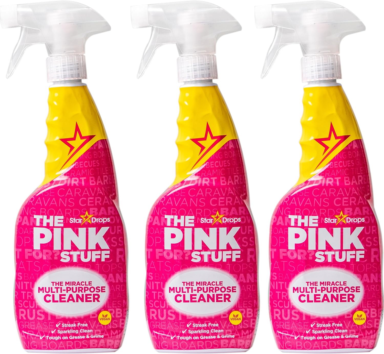 About this itemnVersatile Cleaning Marvel: The Pink Stuff Multi-Purpose Cleaner is a powerhouse formula that effortlessly tackles tough stains and grime on a wide array of surfaces, leaving your countertops, tiles, and more sparkling clean with minimal effort.nGentle Yet Effective: Despite its impressive cleaning prowess, this eco-friendly cleaner is gentle on surfaces, ensuring a streak-free shine without scratches or damage, making it a safe choice for your home.nTrusted Brand, Fresh Experience: From the renowned Stardrops brand, this multi-purpose cleaner delivers reliable performance with a fresh, pleasant scent, elevating your cleaning routine to a more enjoyable experience.