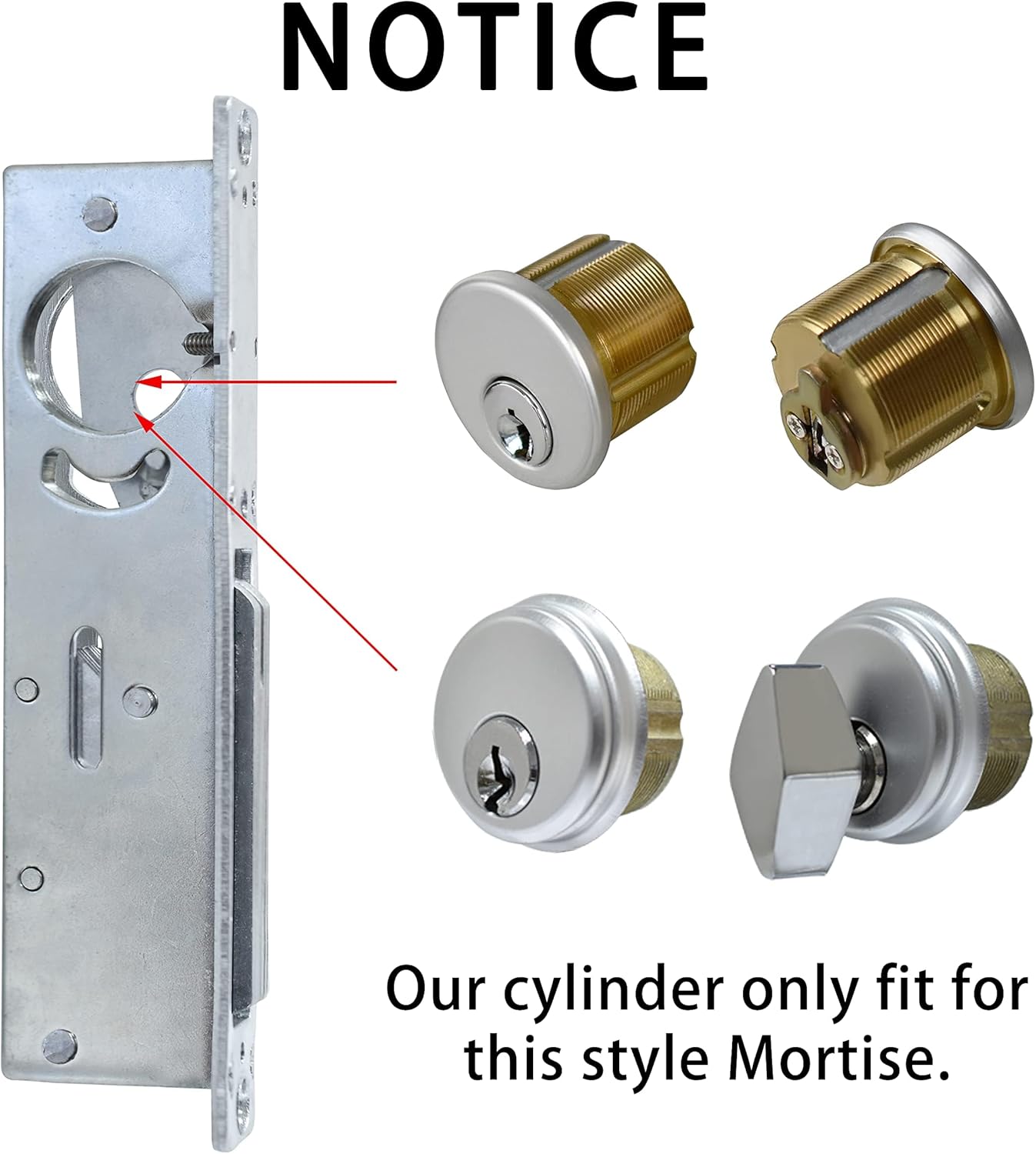 About this itemnPremium Quality with Satin Chrome Black?Crafted from high-quality solid brass, this mortise door lock cylinder features a sleek satin chrome finish for enhanced durability and style.nSturdy and Anti-Corrosion: Enhanced sturdiness and anti-corrosion properties make this mortise lock cylinder durable, secure, and reliable for long-term use.nUniversally Fit?1