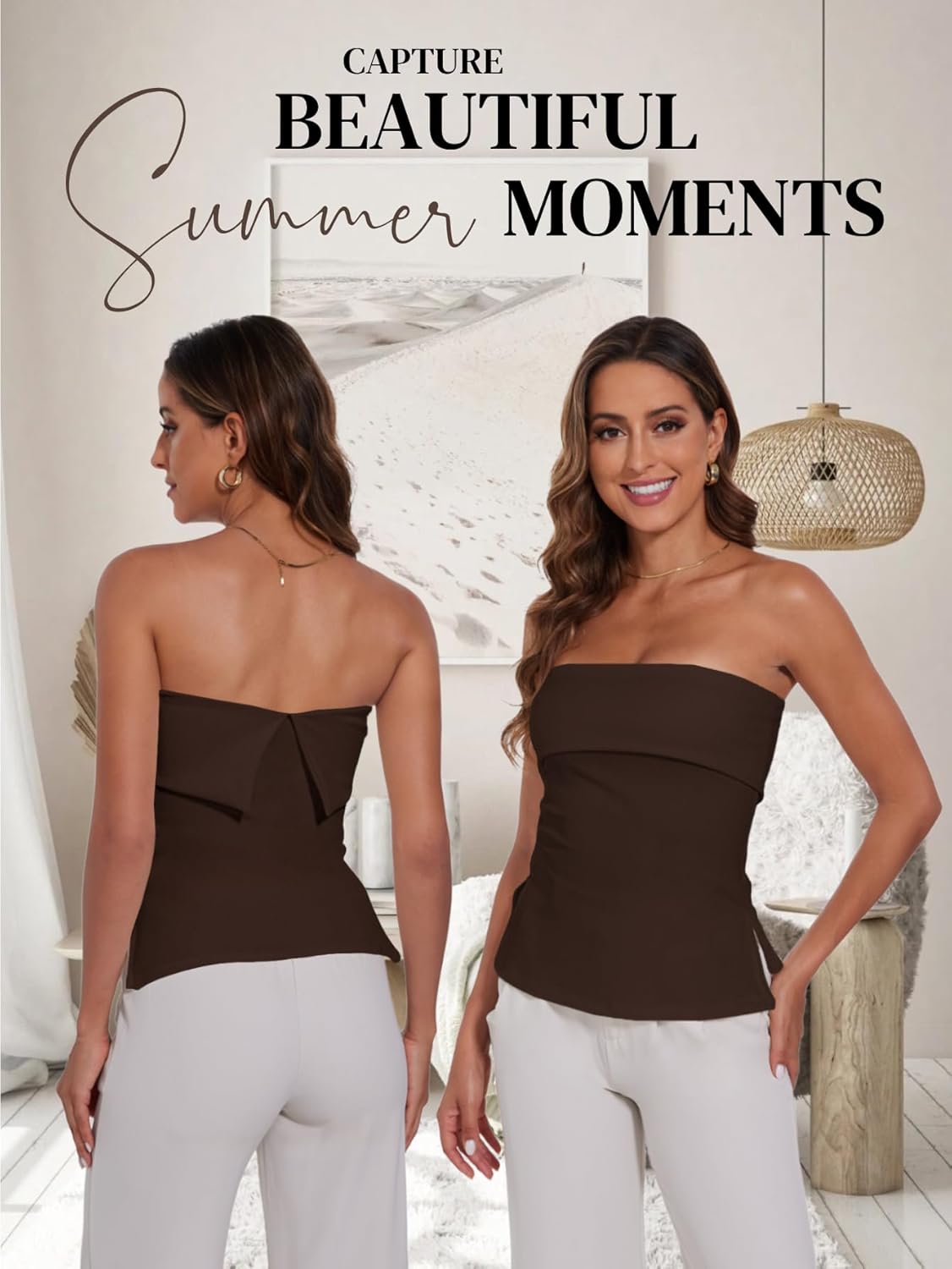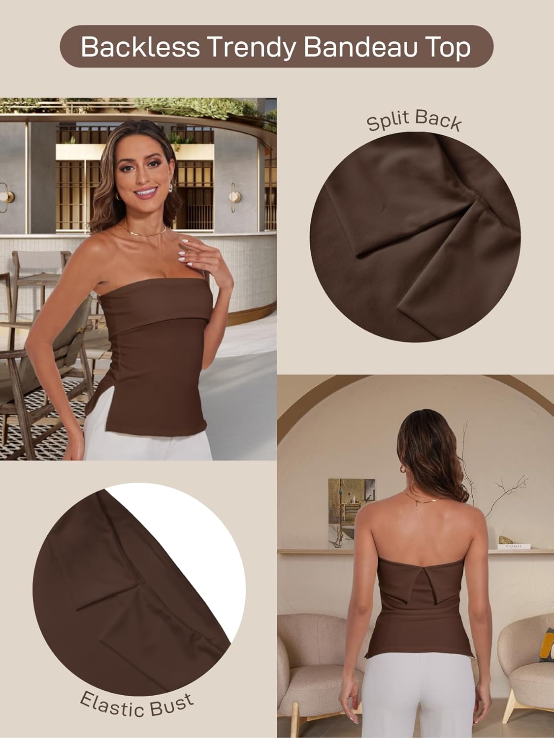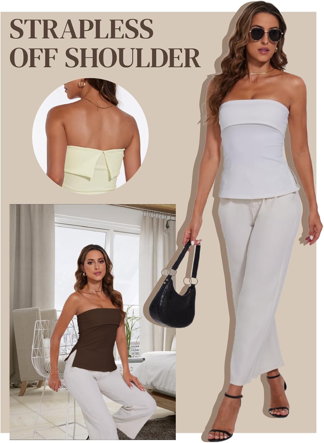 Strapless Tube Tops for Women Backless Going Out Bandeau Top Sexy Trendy Off Shoulder Side Split Summer Bustier Tops