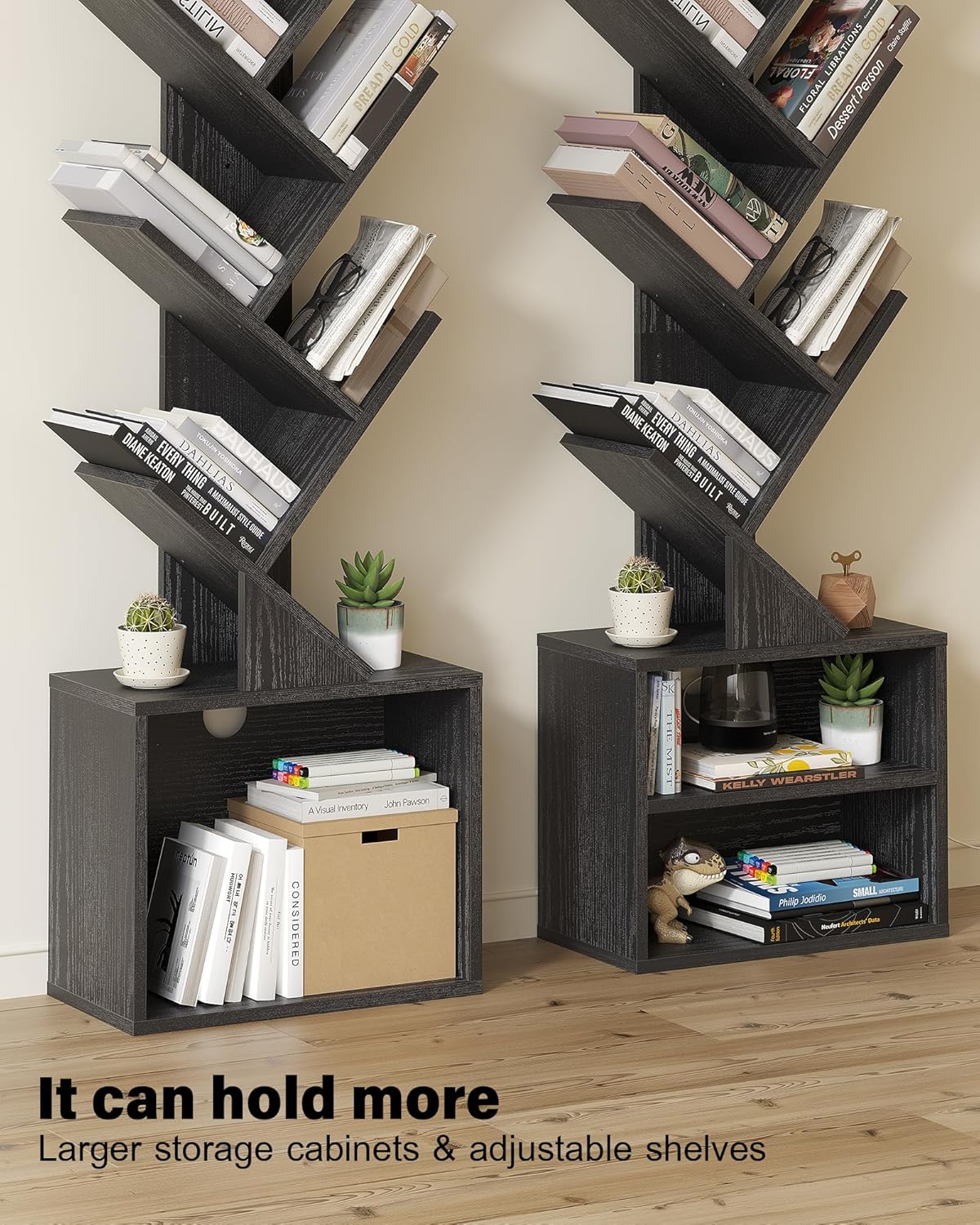 SUNMORY 6 Tier Tree Bookshelf, Small Bookcase with Storage Cabinet, Modern Narrow Bookshelves Organizer, Floor Standing Book Shelf for Bedroom/Living Room/Home Office/Corner, Black