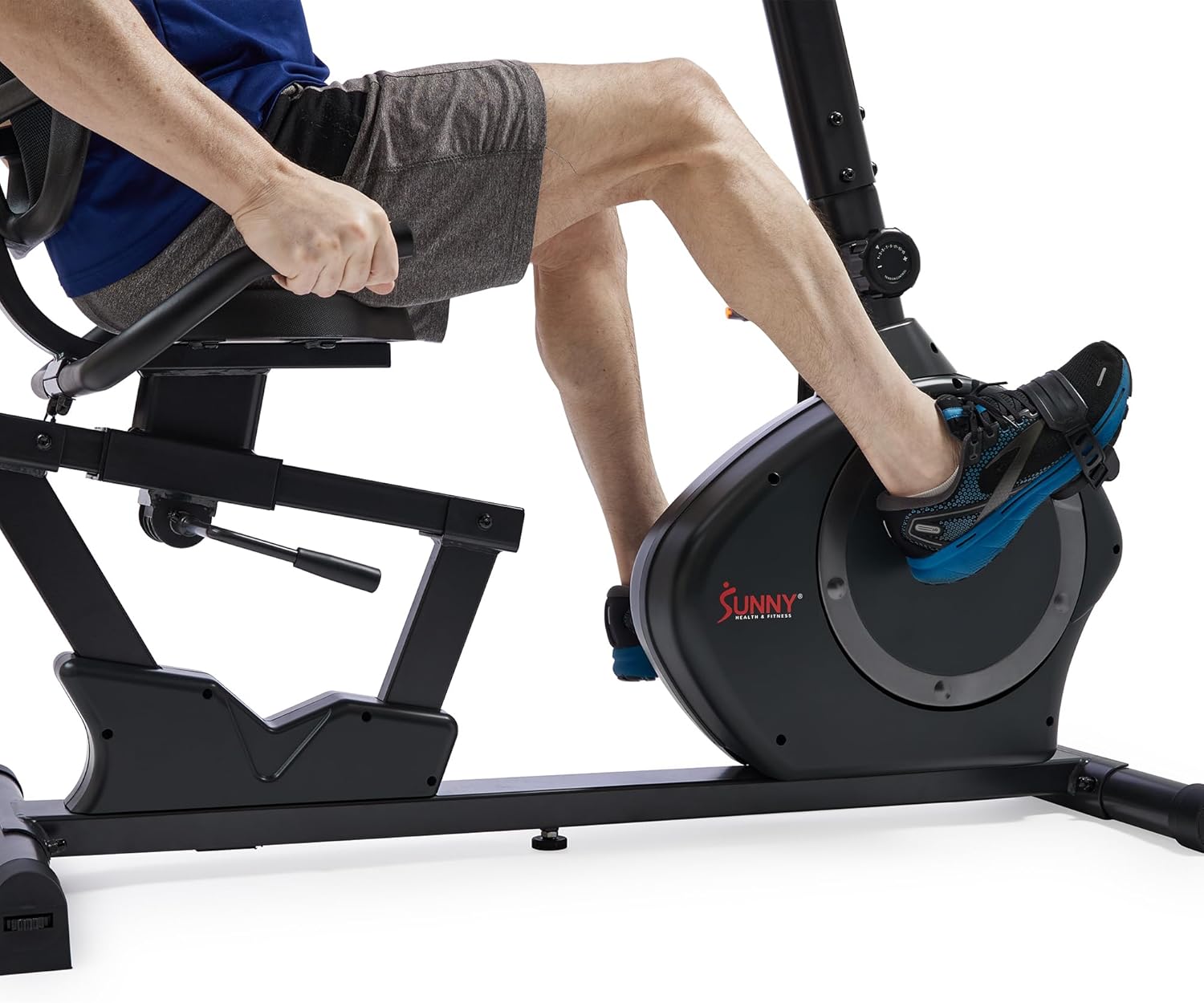 About this itemn?PREMIUIM & HEAVY-DUTY?Crafted from premium commercial-grade Q235 carbon steel, this equipment boasts a heavy-duty design supporting up to 350 LB, ensuring top-tier durability and quality for a superior workout experience.n?FREE CONNECTED APP? Enjoy FREE access to the SunnyFit App with every Sunny Health & Fitness product—no membership fees! Dive into 1,000+ trainer-led workouts, explore 10,000+ virtual scenic tours, track your progress, challenge others, and much more!n?JOINT HEALTH MATTERS?Our recumbent bike offers a low-impact workout that reduces stress on joints and provides better back support with its reclining position. It’s ideal for all-purpose exercise, rehab, cardiovascular health, and muscle toning.n?UNDISTURBED EXPERIENCE?The ultra-quiet and smooth ride with 15 levels of magnetic tension and a belt drive mechanism is ideal for home. Effortlessly switch intensity with a simple dial turn. Immerse yourself in tranquility with our recumbent bike.n?DESIGNED FOR ULTRA COMFORT?Experience luxury with our recumbent bike, featuring a mesh backrest, and an adjustable wide cushion seat for perfect positioning. Enjoy stability with adjustable foot stabilizers for a secure workout anywhere.n?SAFER X-CRANK DESIGN, EN 20957 EUROPEAN STANDARD COMPLIANT?Experience a seamless workout with an innovative vertical X-Shaped crank design that ensures long-lasting durability. Engineered for safety, this machine complies with the EN 20957 standard, significantly enhancing safety for your peace of mind.n?TRACK YOUR PROGRESS?Monitor key performance metrics using the comprehensive dashboard. View data such as time, speed, distance, calories burned, heart rate, target heart rate, and odometer readings on the digital performance monitor.nShow more