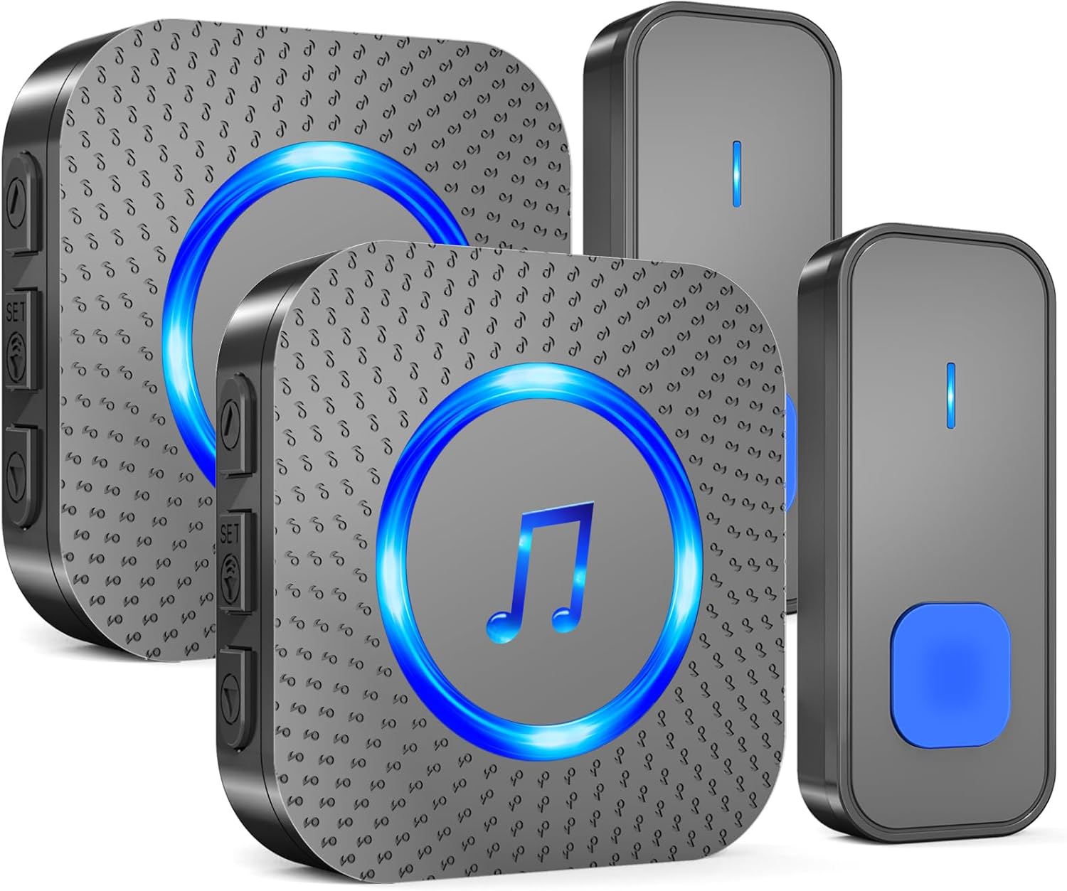 SURFOU Wireless Doorbell with 2 receivers 2 Buttons,IP55 Waterproof Doorbell,1300 FT/400M Remote Doorbell,55 Chimes 5 Volume,Colorful LED Flashing,110 db Loud Volume,For Home/Classroom