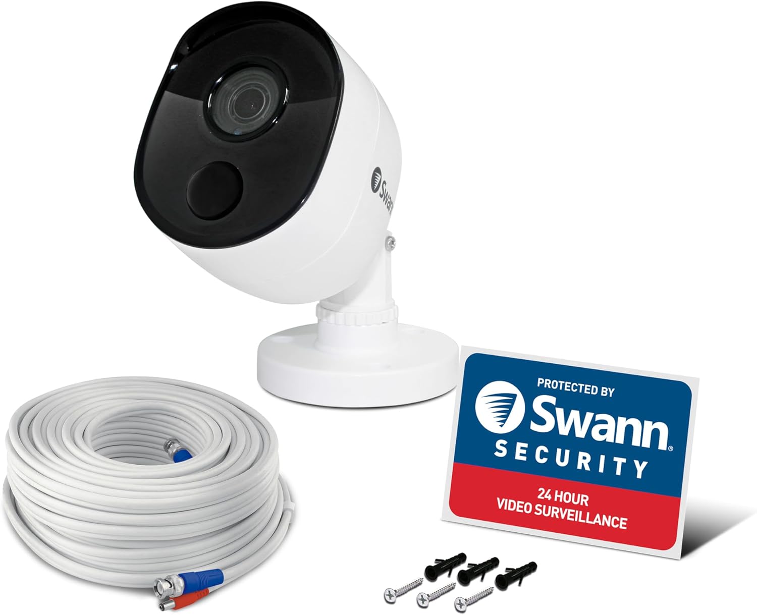 About this itemnFULL HIGH DEFINITION FOOTAGE: Combine the PRO-1080MSB camera with a compatible DVR to see faces, license plates and more in rich 1080p full HD. The camera’s sturdy construction gives you 24/7 protection in rain, snow, heat and all year round. With a 90 degree viewing angle and night vision up to 100ft in total darkness and 130ft with ambient light, no blind spot will go unnoticed. Some compatible series are: DVR-4580, DVR-4980, DVR-5580 & more.nDIY SURVEILLANCE WITH NO ONGOING COSTS: This wired security camera delivers reliable home, office and retail protection 24/7. Enjoy the peace of mind knowing that if something unwanted occurs you will be able to see what’s happened. Mount inside or outside via a secure wired connection to a compatible DVR with no ongoing monitoring costs.nTRUE DETECT HEAT & MOTION SENSING: Swann’s professional-quality thermal sensing security camera detects warm moving objects, like people and cars, and, when combined with a DVR, sends push notifications so you can act immediately to prevent unwanted activity. With reliable notifications and fewer false triggers, you’ll save time and stress.nSECURITY MADE SMARTER: Once connected to a DVR you can live stream and trigger push notifications on your mobile device via the latest Swann Security app. Speak to see what the camera captures via the DVR using voice commands on TV via the Google Assistant and Chromecast or via Alexa on Echo Show, Echo Spot or 4K Fire TV.n See more product details
