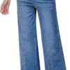 GRAPENT Pull On Womens Jeans Baggy Stretchy High Waisted Denim Wide Leg Trouser Pants Trendy Front Seam 90s Loose Jean