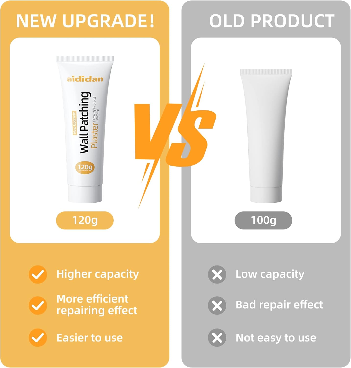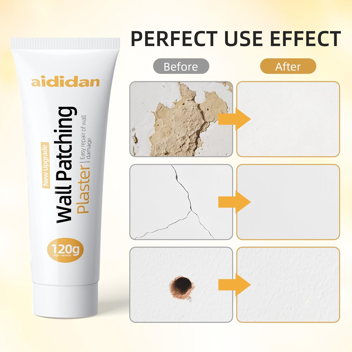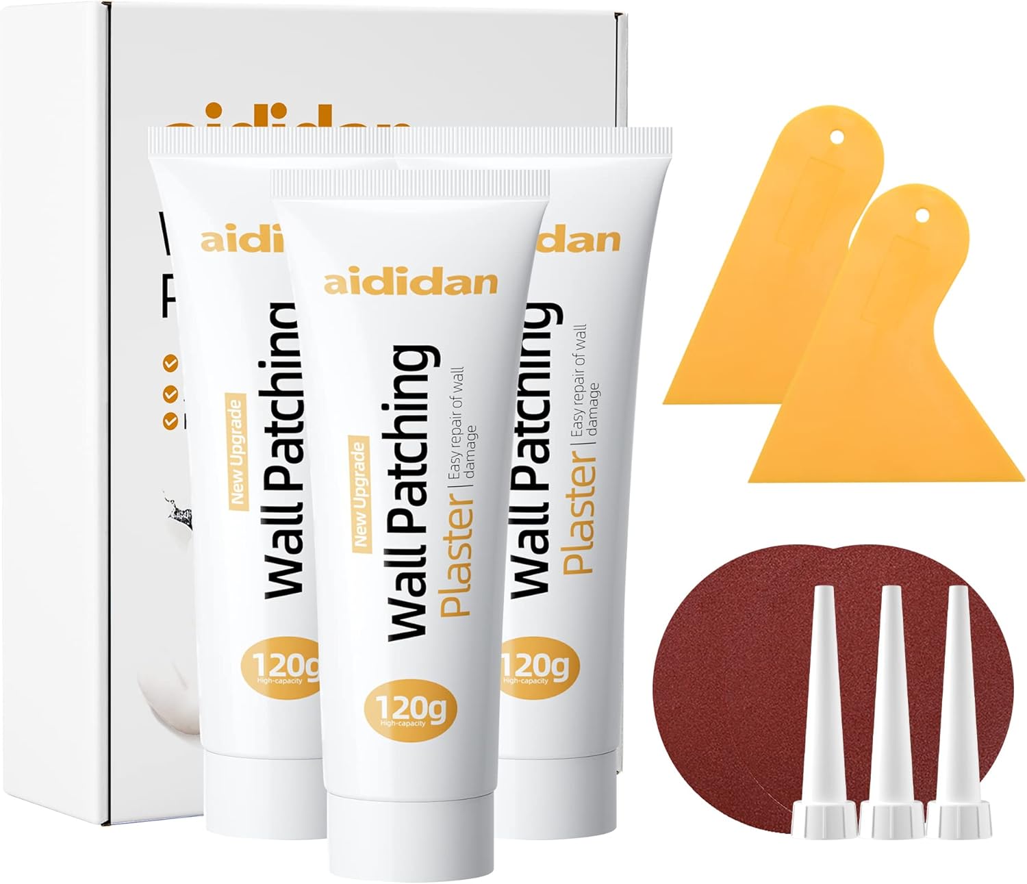 PERFECT DRYWALL REPAIR KIT:Kit includes 3 wall repair paste(360g), 3 nozzle extenders, 2 scrapers and 2 sandpaper, contains all the tools necessary for a professional repair.nSUPER STRONG & SUPERFAST REPAIR SOLUTION:aididan wall mending agent has very strong adhesion, just squeeze and scrape to repair quickly and almost restore the original after repair, simple process to give you professional results.nSAFE & PRACTICAL & GREEN INGREDIENTS:aididan wall mending agent consists of wall adhesive, resin, and carbonate overlay that contains no harmful ingredients, 100% green ingredients and is safe for children, elderly, and pets. The wall patch kit is waterproof, formaldehyde free and completely safe and effective for home improvement.nWIDELY USE:Our repair kit can easily solve most wall damage problems in homes, schools, and offices, etc. Perfect for repairing Nails Hole on walls, Wall cracks, Peeling, Graffiti, Stains, and Scraping.n100% SATISFIED AND FAST AFTER-SALES SERVICE:This is a new type of upgraded wall repair agent that is different from the market, with waterproof, anti-cracking, and fast drying advantages. If you encounter any problems or dissatisfaction after receiving the product, please contact us at any time. We provide 24-hour customer service and support, 100% refund or new replacement. You can rest assured to buy our products.n See more product details