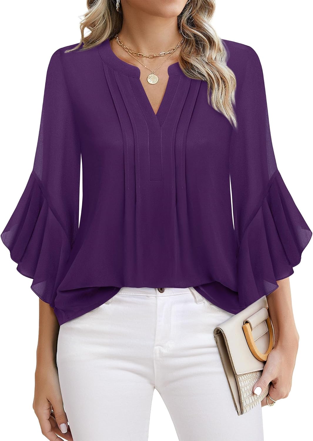 Timeson Women’s 3/4 Sleeve Tops Dressy Casual Business Work Blouses Chiffon Office Shirts