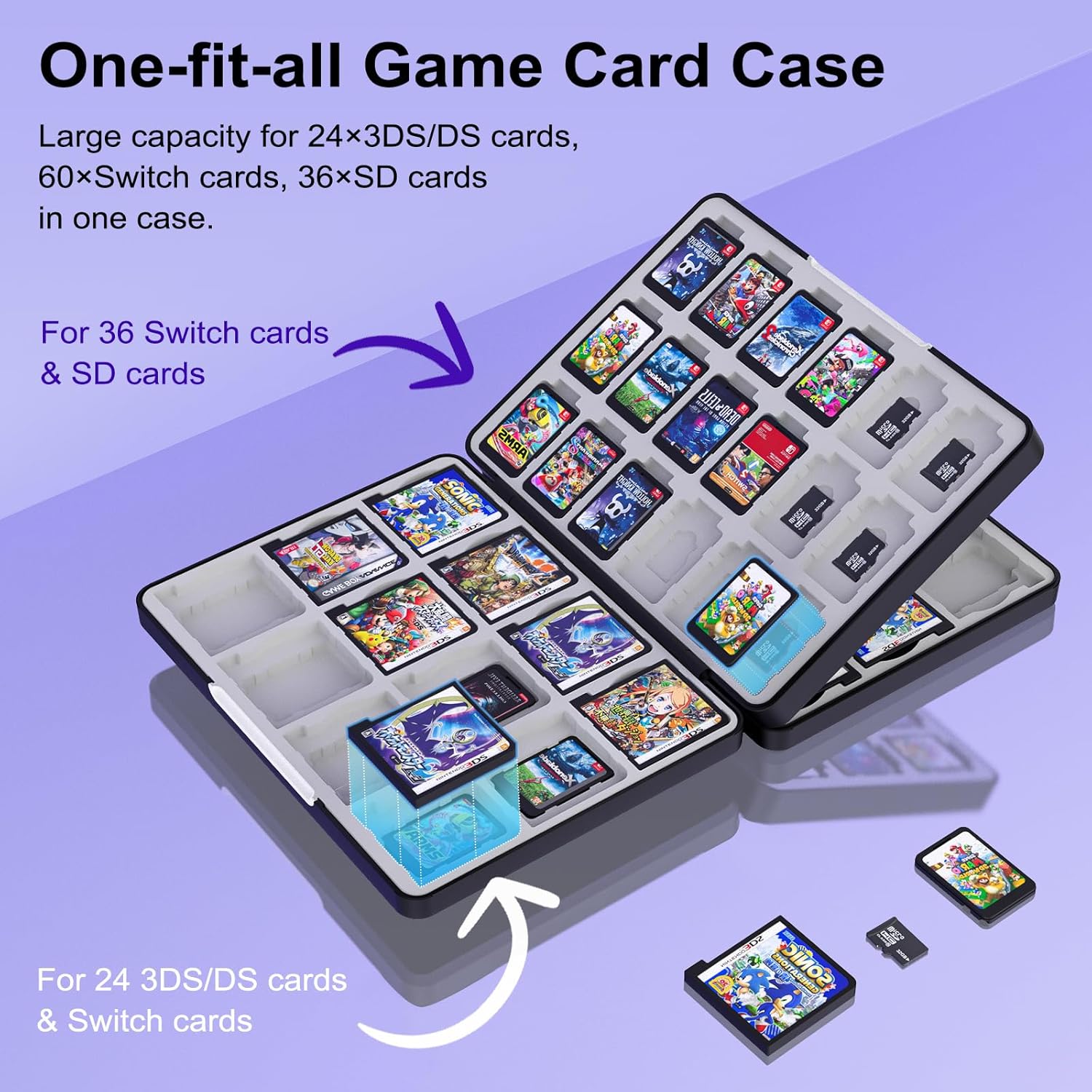 TiMOVO 60 Game Card Case for Switch OLED/Switch/3DS/2DS, 60 Slots Switch Game Holder Cartridge For 24 3DS/3DSXL/DS/DSi Cards & 60 Switch & 36 SD Cards, 3 in 1 Portable Game Storage Case, Black & Gray