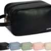 Excellent quality: Our toiletry bag for men is made of water-resistant material, ensuring easy cleaning and protection against splashed water. It perfect for travel and daily use.nLarge Capacity: With a spacious main compartment and elastic straps, our travel toiletry bag for men securely holds bottles upright, preventing spills during transportation. The multiple pockets inside keep all your shaving supplies and toiletries organized.nDual Zippers Designed: With double zippered openings, our mens toiletry travel bag enables convenient and quick access to the main compartment. Wide opening design makes it effortless to get your items.nWet-dry separation: Our men toiletry bag features waterproof pocket that effectively separates wet and dry items.nVersatility: Our versatile dopp kit is suitable for home, business trip and travel use. Its unique design allows you to have a toiletry bag, shaving bag, and cosmetic bag all in one, making it the perfect travel essential.
