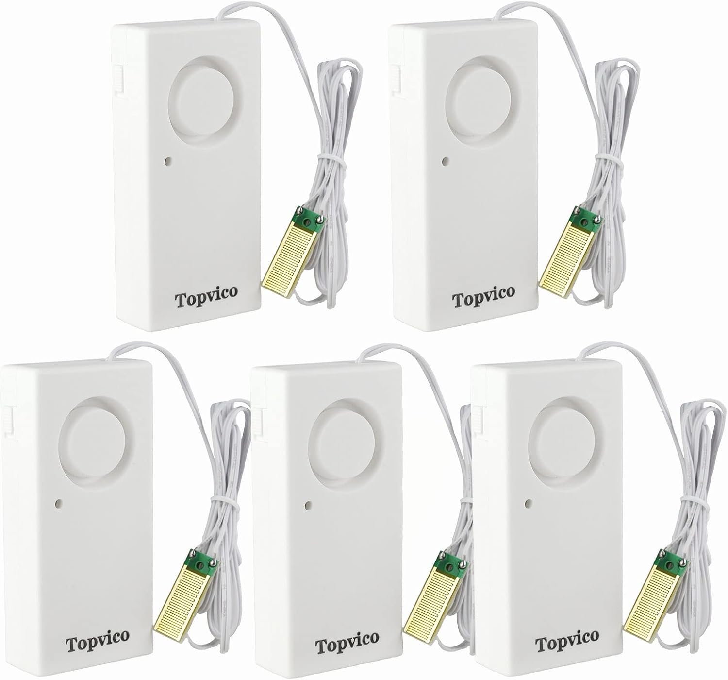 Topvico Water Leak Detector, 120dB Loud Siren, Powered by 9V Battery (not Include), Sensor Alarm for RV Kitchen Basement Water Heater, 5 Pack