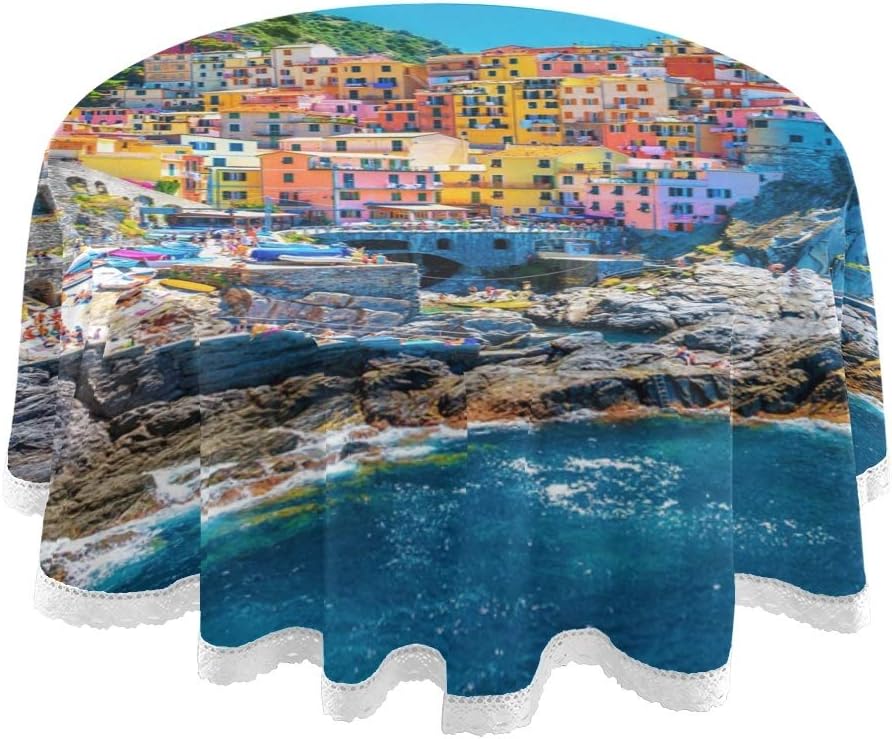 Traditional Italian Architecture Round Hostel Table Cloths for Home Kitchen Restaurant Dining Tables,Waterproof Stain and Wrinkle Resistant Tablecloth,Embroidered Edges_48