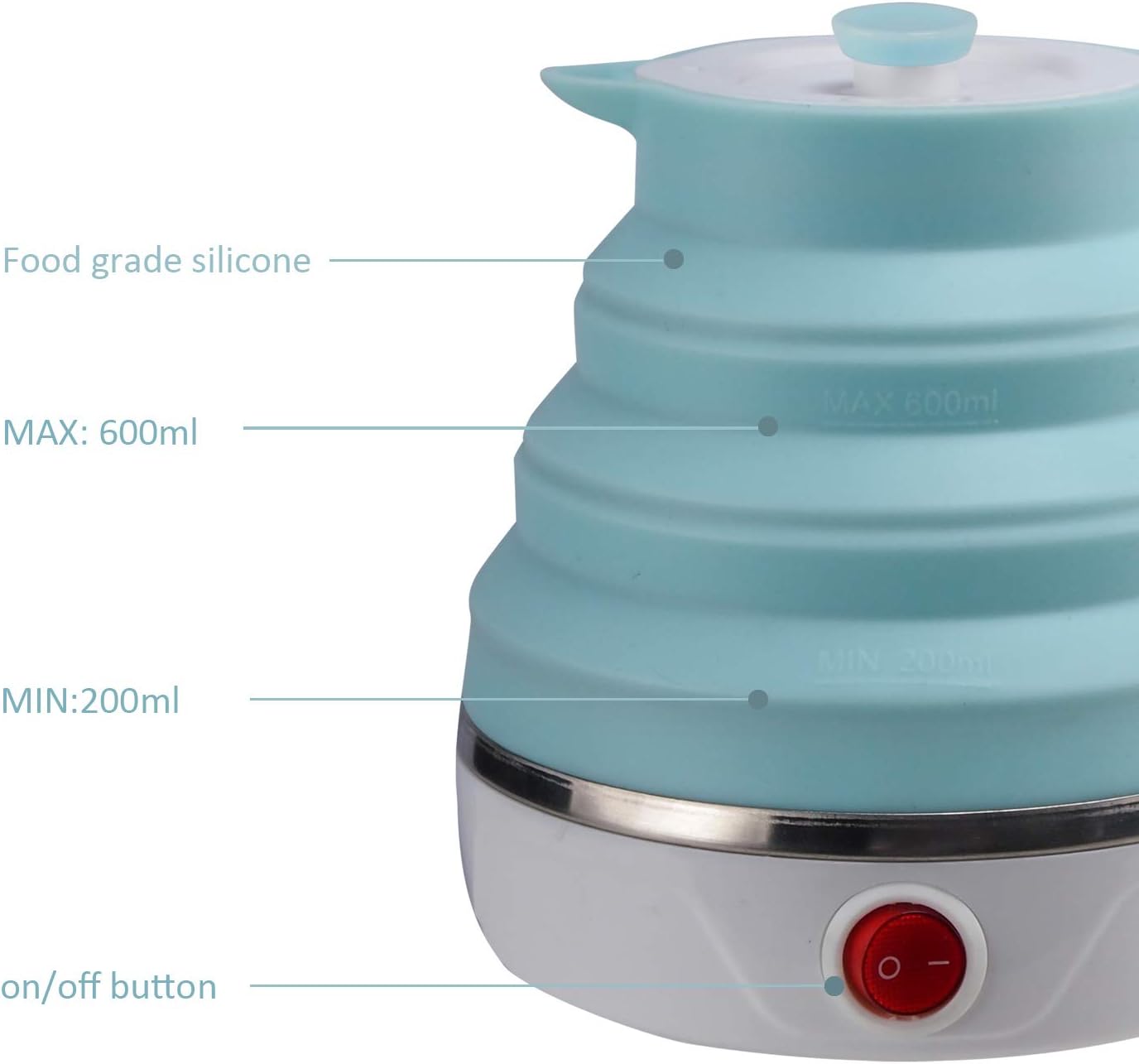 Travel Foldable Electric Kettle, Collapsible Food Grade Silicone Small Kettle Boiling water,Dual Voltage?600ml,110-220V US Plug? (Blue)
