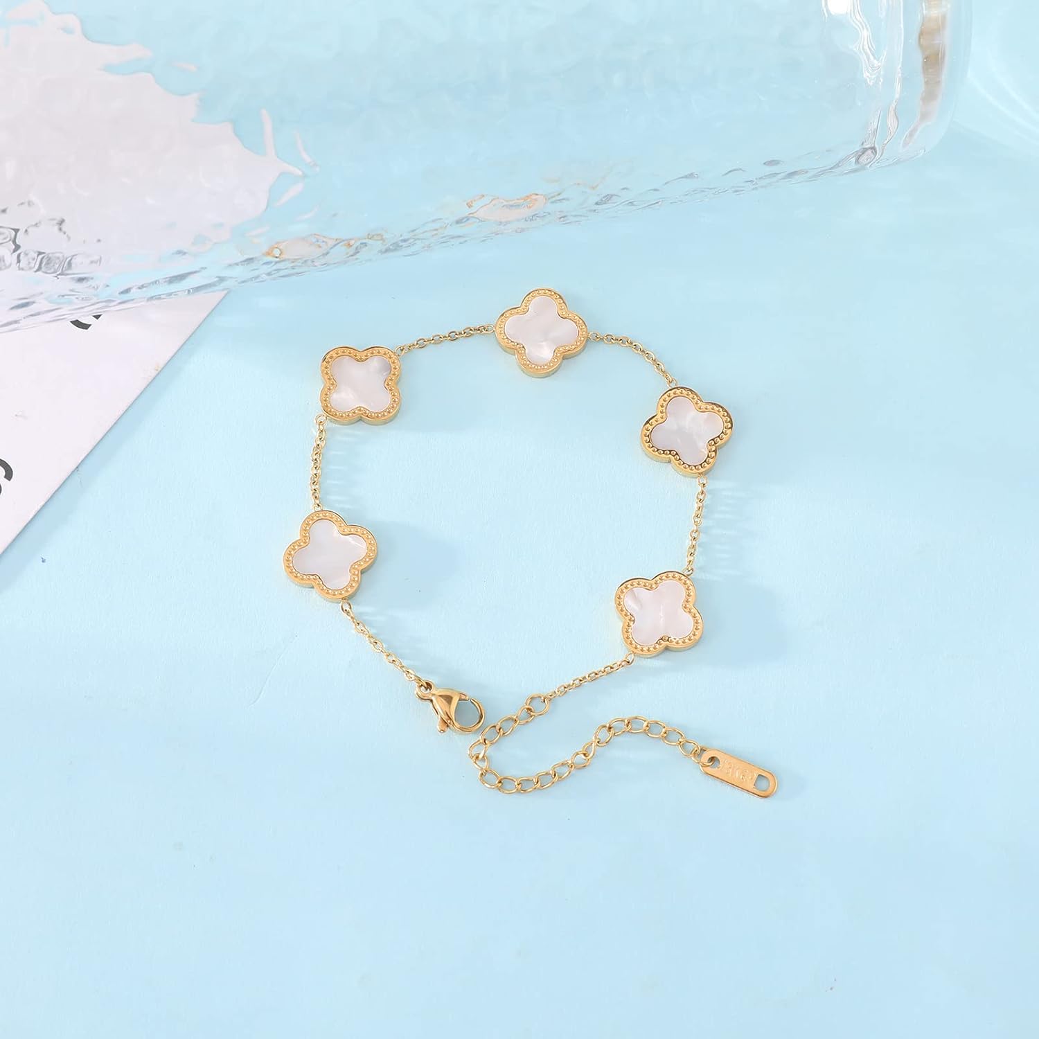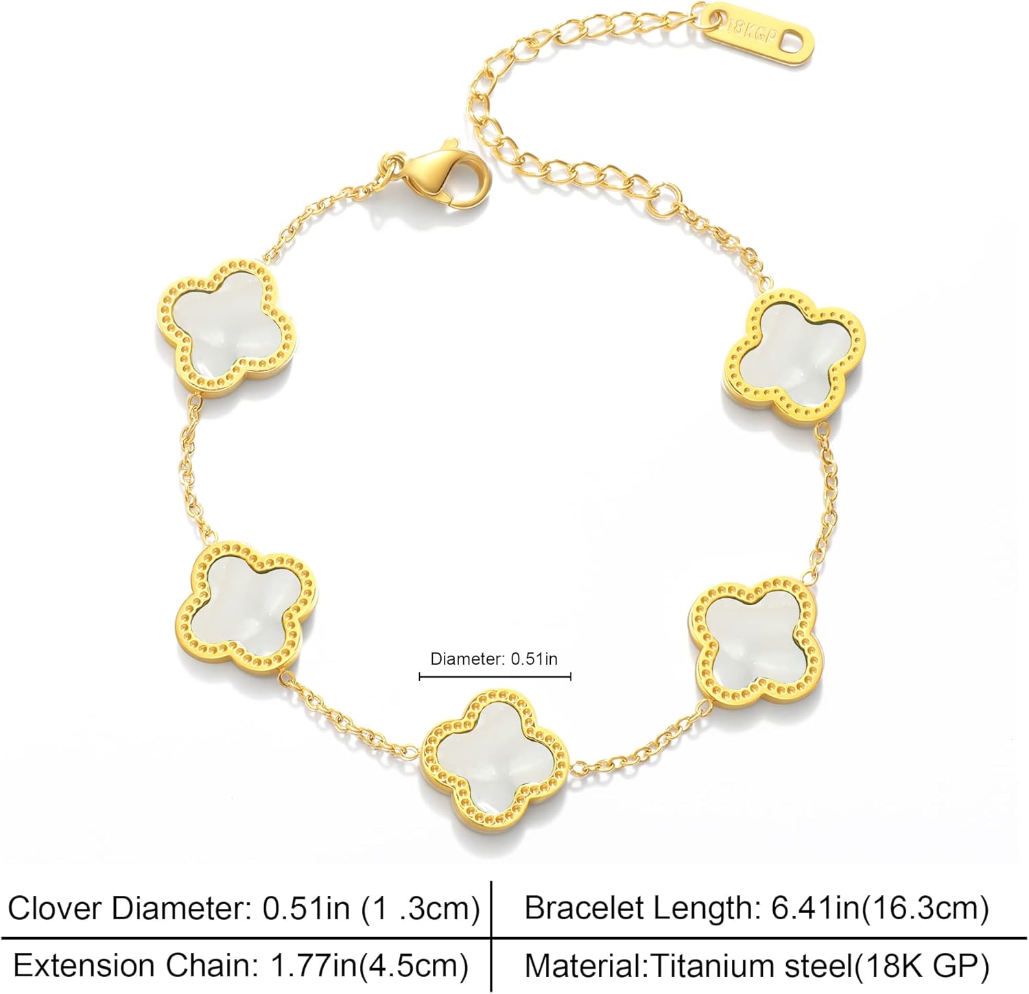 Trendy Link Bracelets for Women 18K Gold Plated Clover Adjustable Lucky Bracelet Mother’s Day Gift