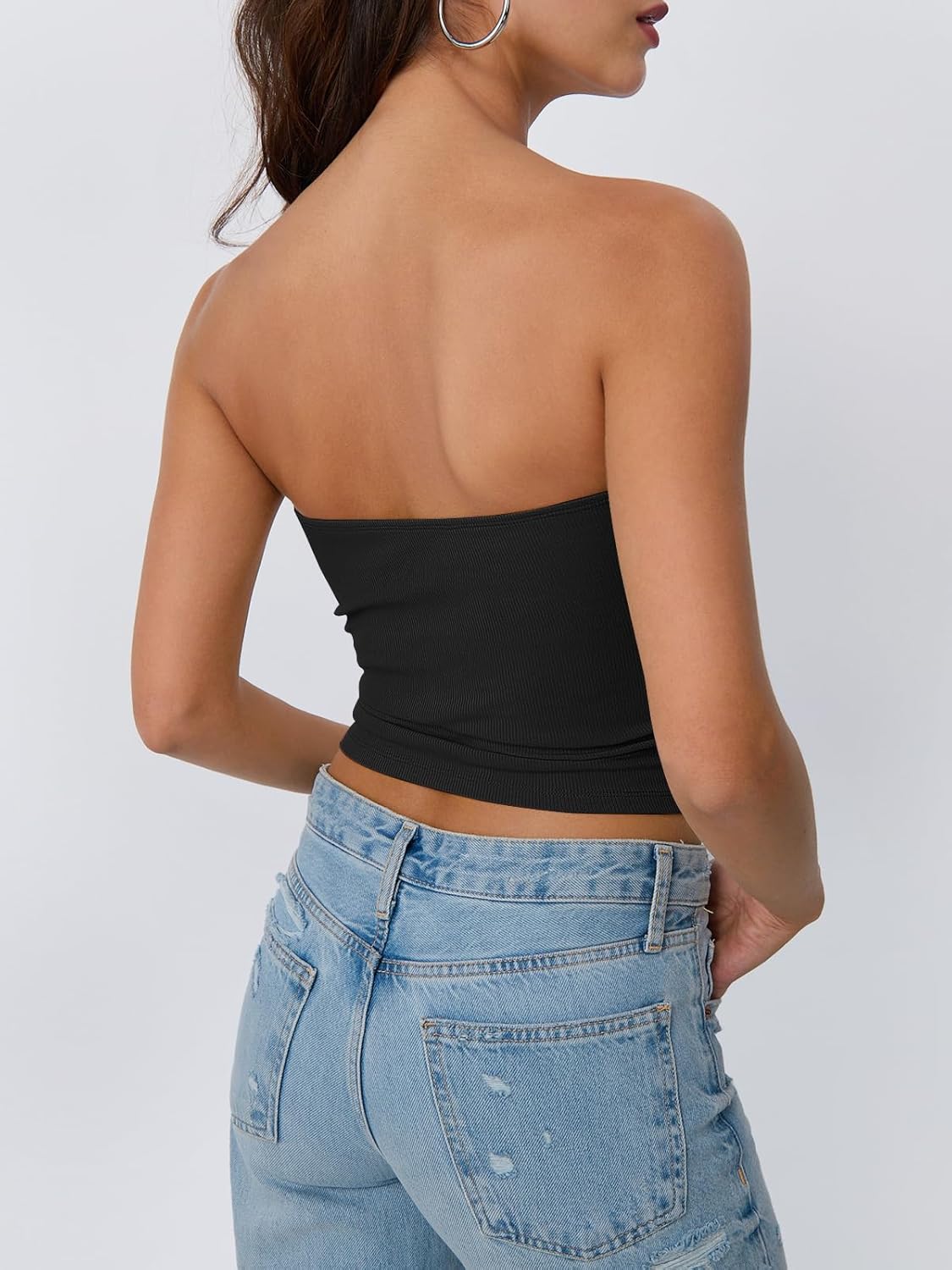 Trendy Queen Tube Tops for Women Summer Going Out Crop Ribbed Tank Bandeau Sexy Fashion Y2k Spring Sleeveless Bra 2025