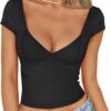 Trendy Queen Womens Deep V-Neck Backless Tops Short Sleeve Slim Fit T-Shirts Basic Y2K Tops Bustier Corset Cami 2025