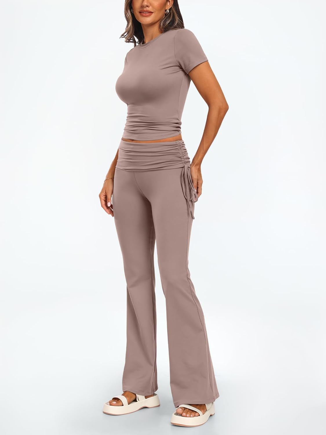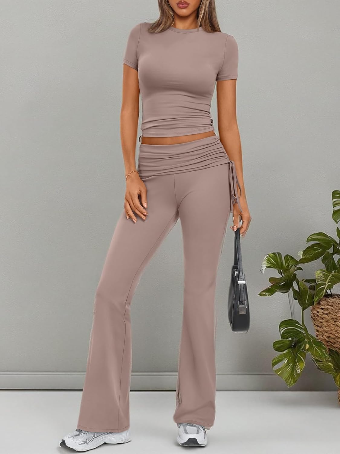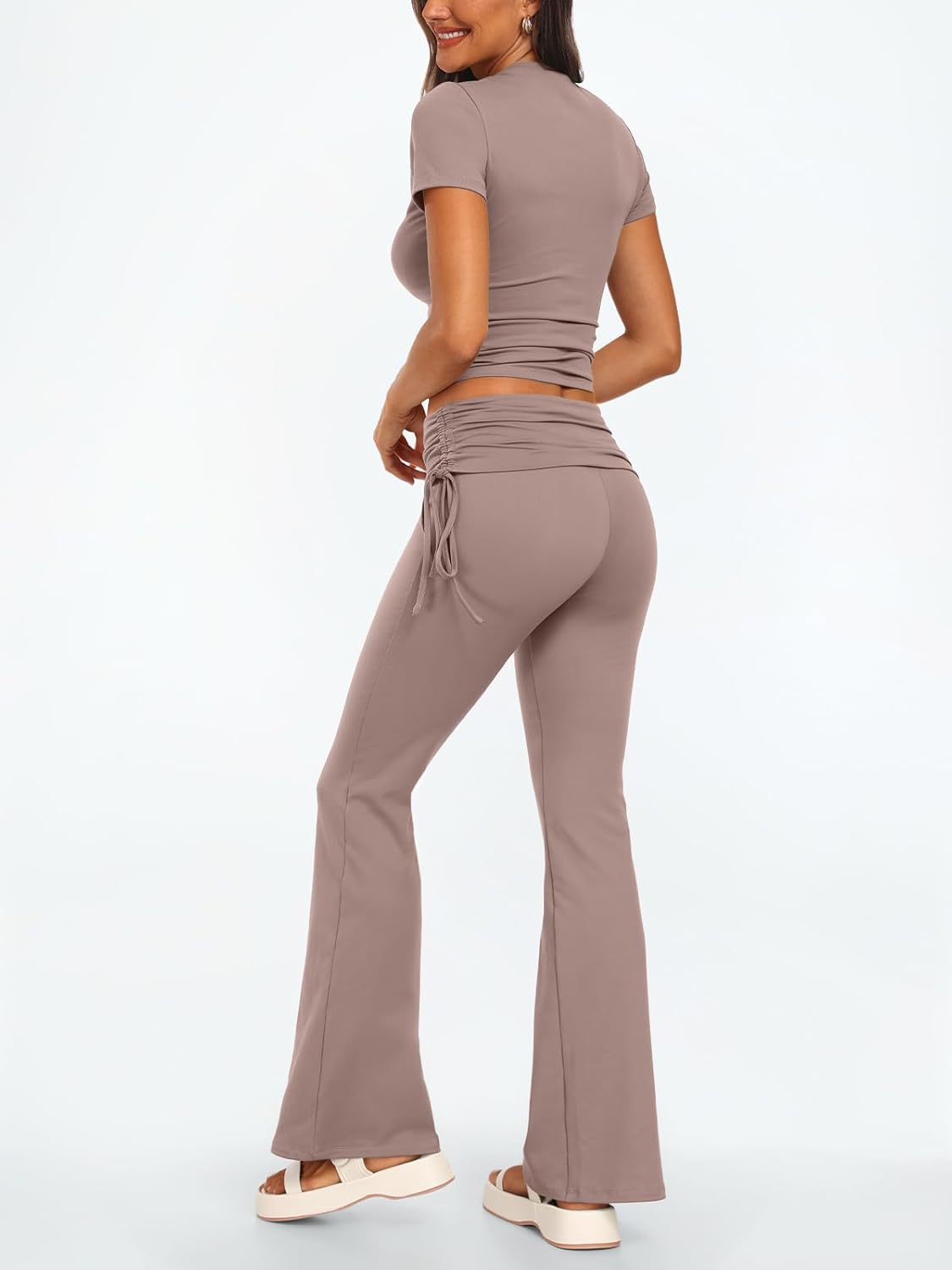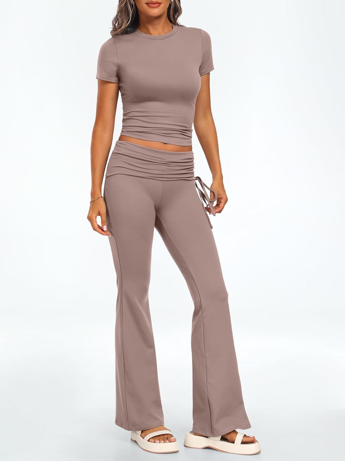 Trendy Queen Womens 2 Piece Outfits Lounge Sets Summer Y2k Short Sleeve Cropped Tops and Drawstring Flare Pants Tracksuits