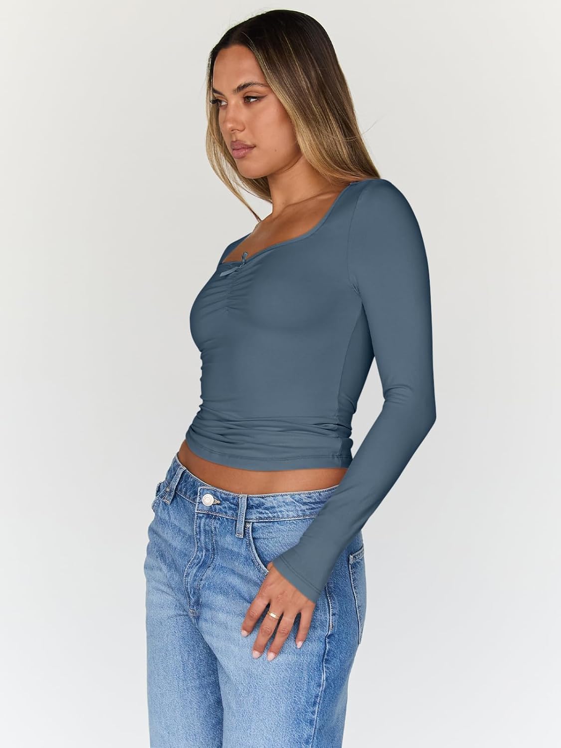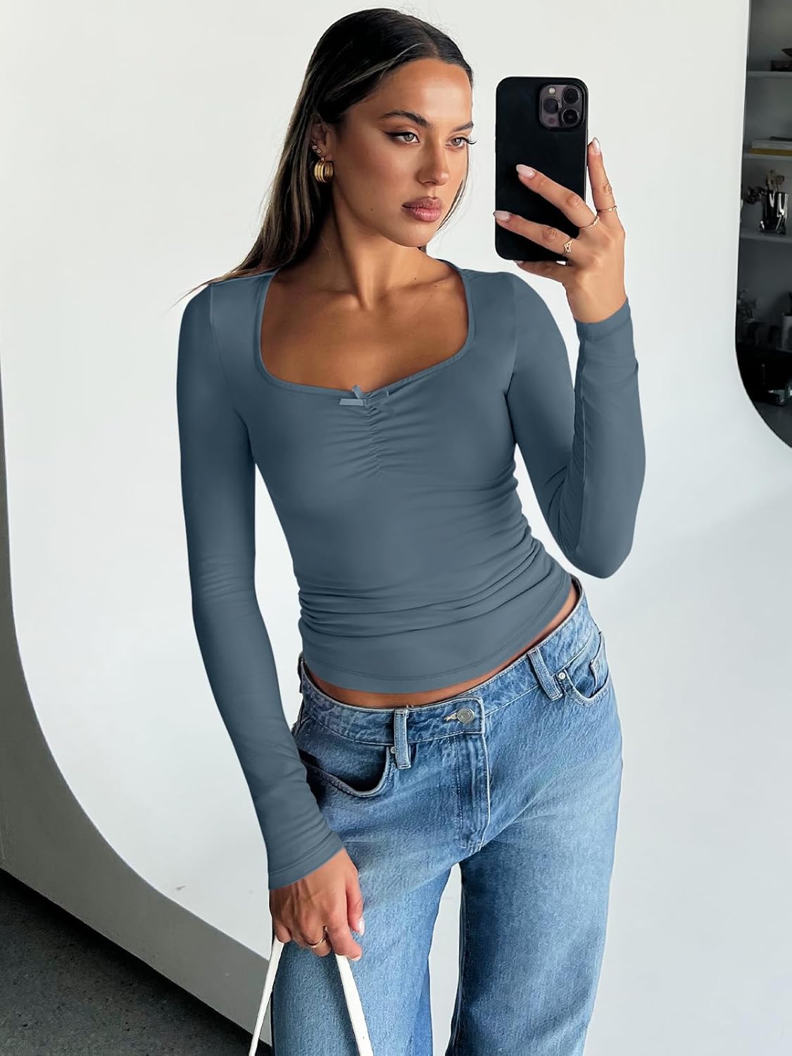 Trendy Queen Womens Going Out Tops Long Sleeve Top Trendy Cute Shirt Y2k Clothing Fall Fashion Clothes 2025