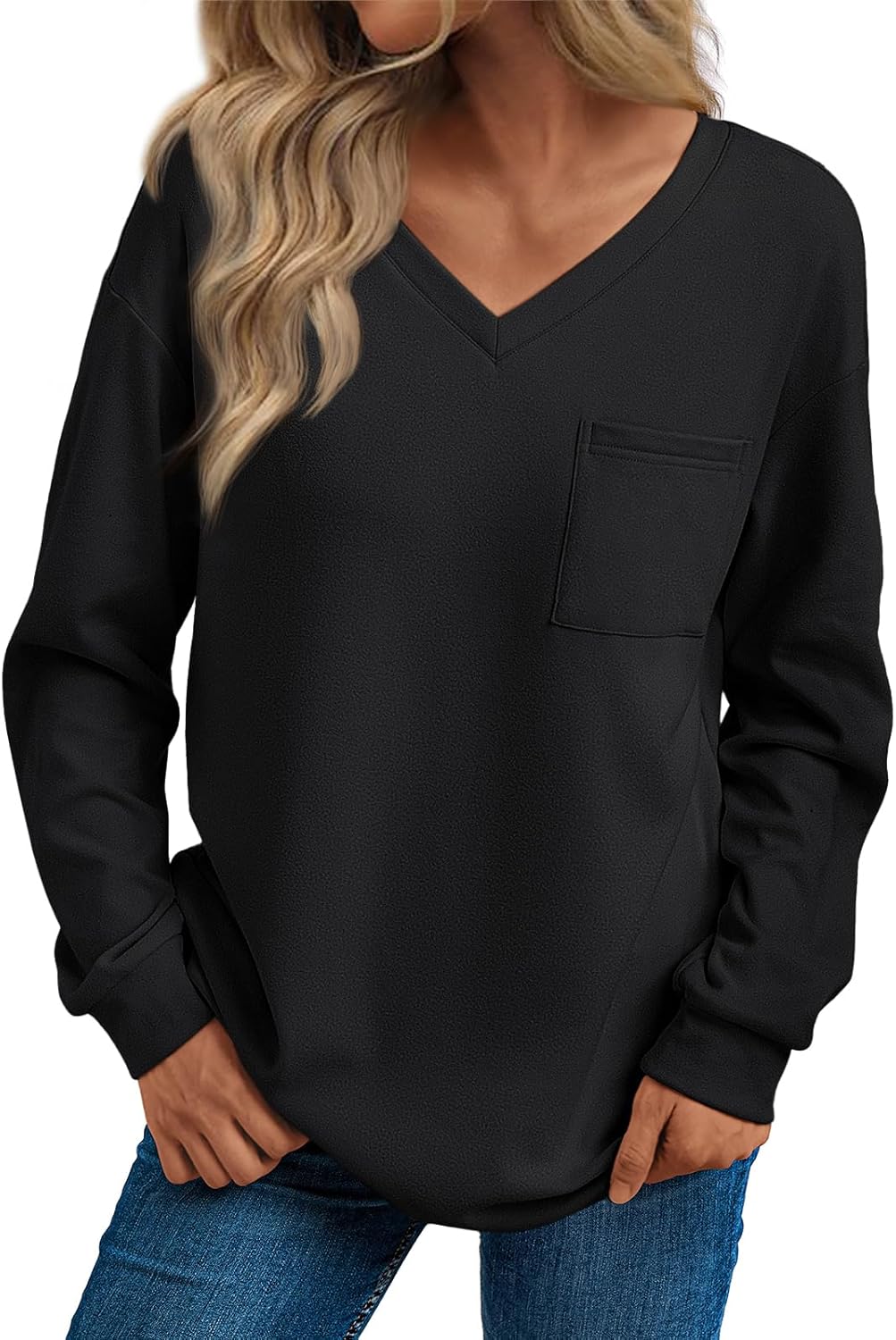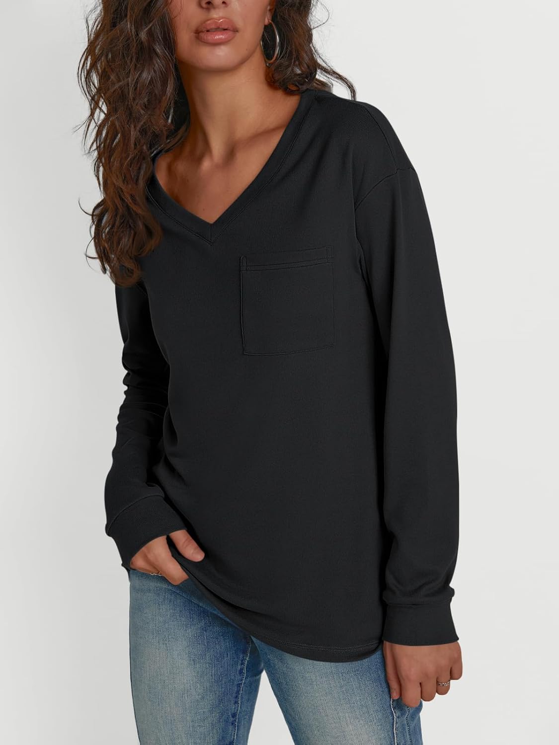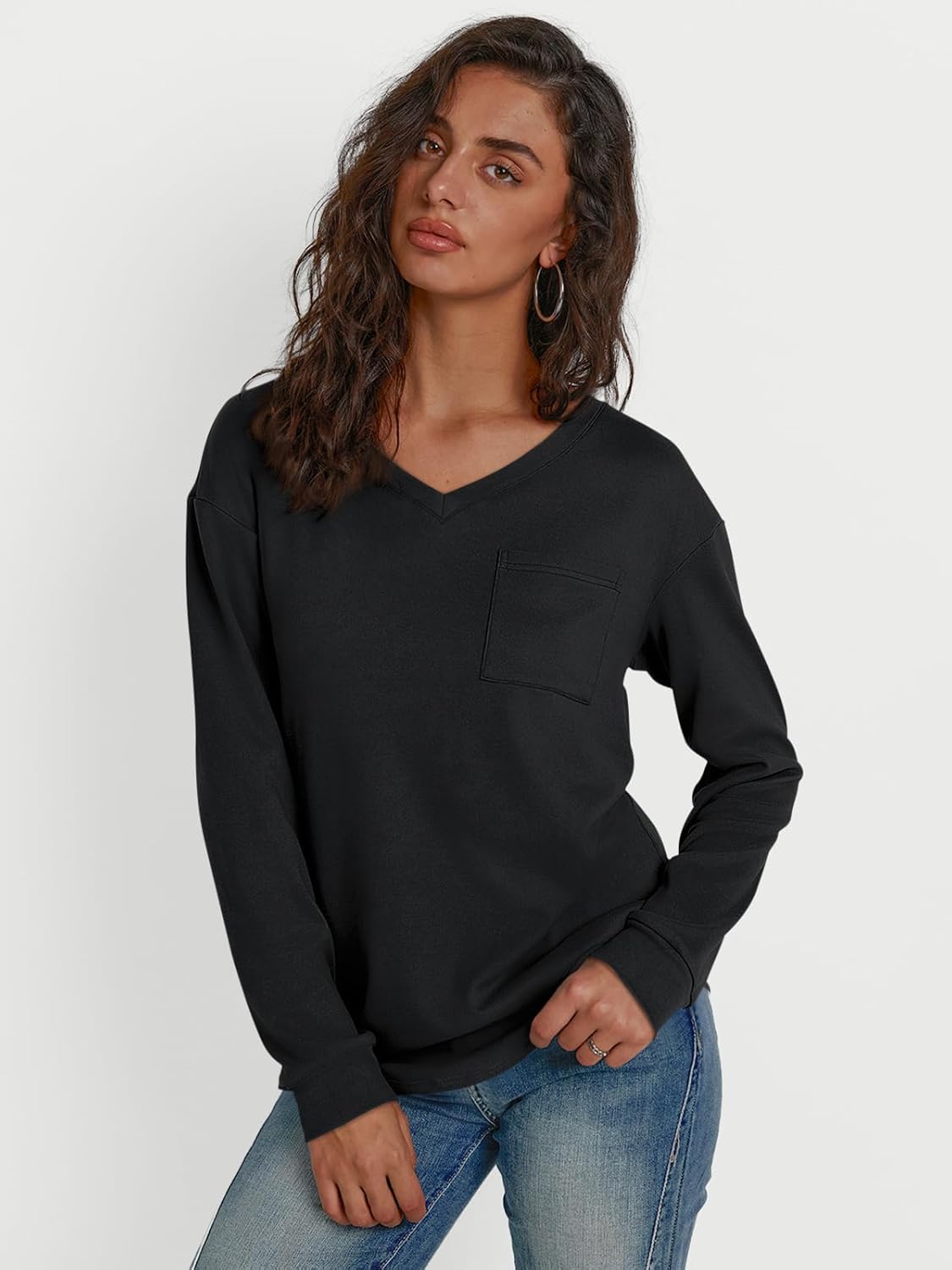 Trendy Queen Womens Long Sleeve Tops Casual Shirts V Neck Clothing Fall Fashion Clothes with Pocket