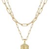 M MOOHAM Dainty Gold Necklace for Women - 14K Solid Gold Over Layering Necklaces for Women Cute Hexagon Letter Initial Necklaces for Women Gold Layered Necklaces for Women Jewelry Gifts