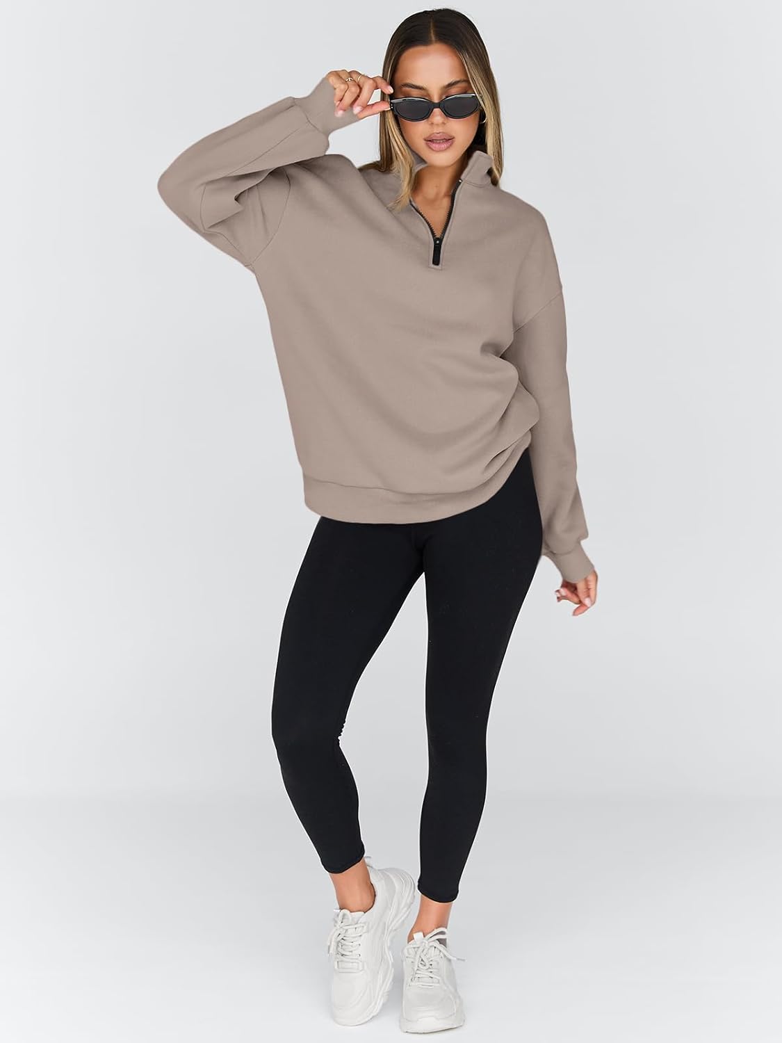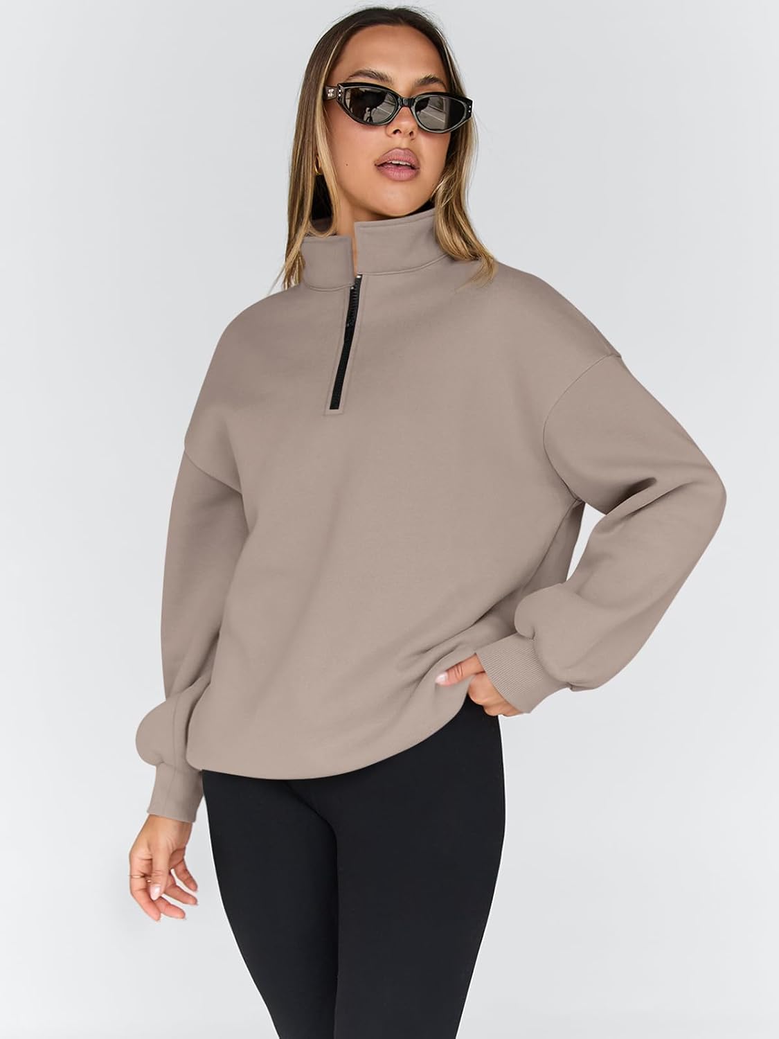 Trendy Queen Womens Oversized Sweatshirts Fall Fashion Hoodies Half Zip Pullover Long Sleeve Shirts Clothes Outfits