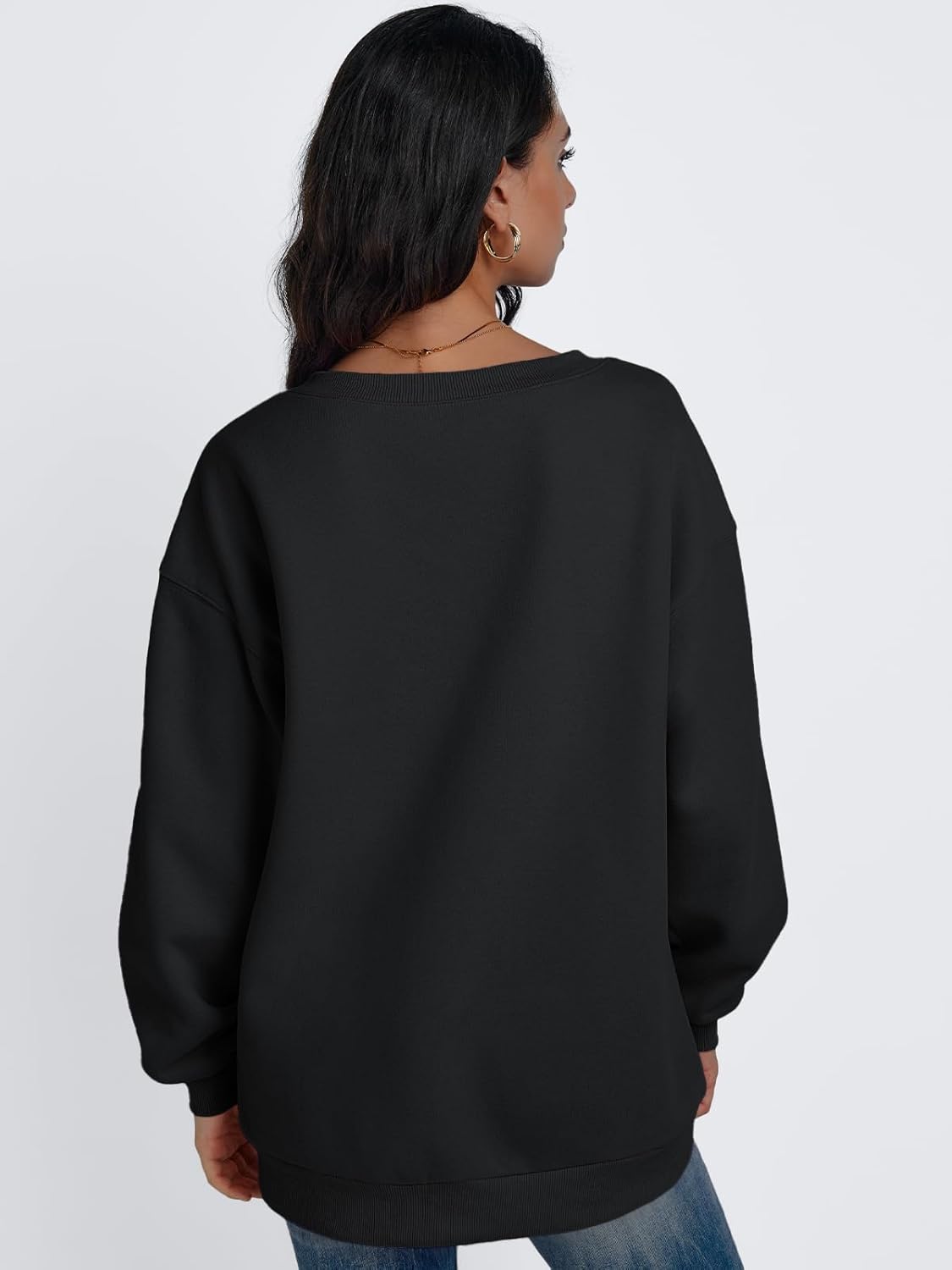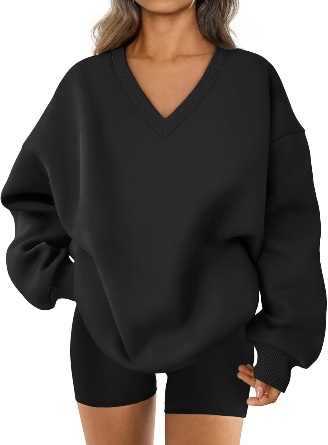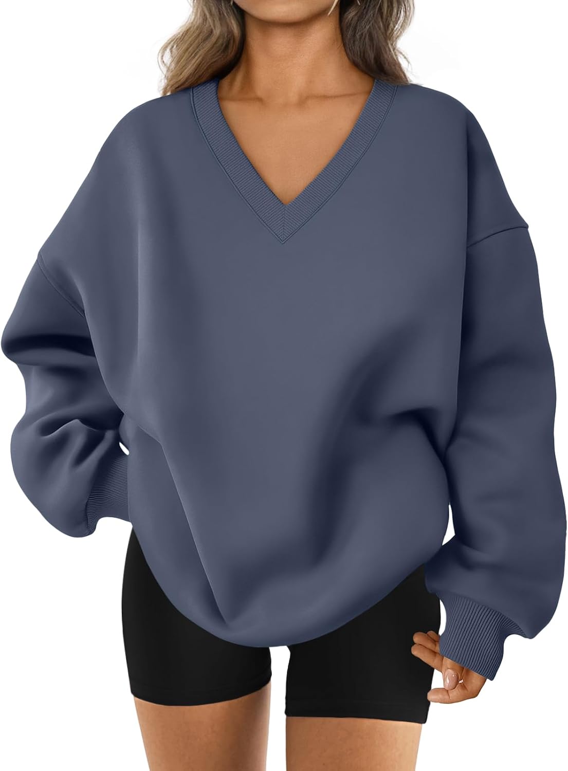 Trendy Queen Womens Oversized Sweatshirts Hoodies Fall Fashion 2024 Outfits Winter Clothes Sweaters Preppy V Neck Teen Girls