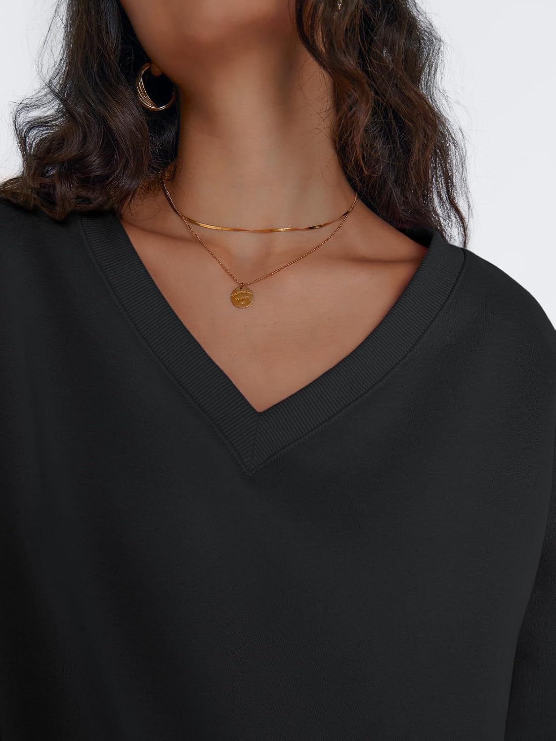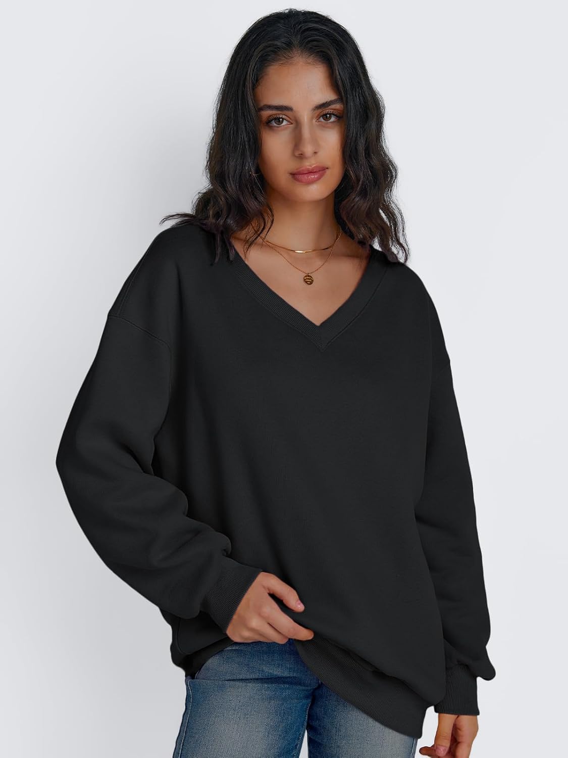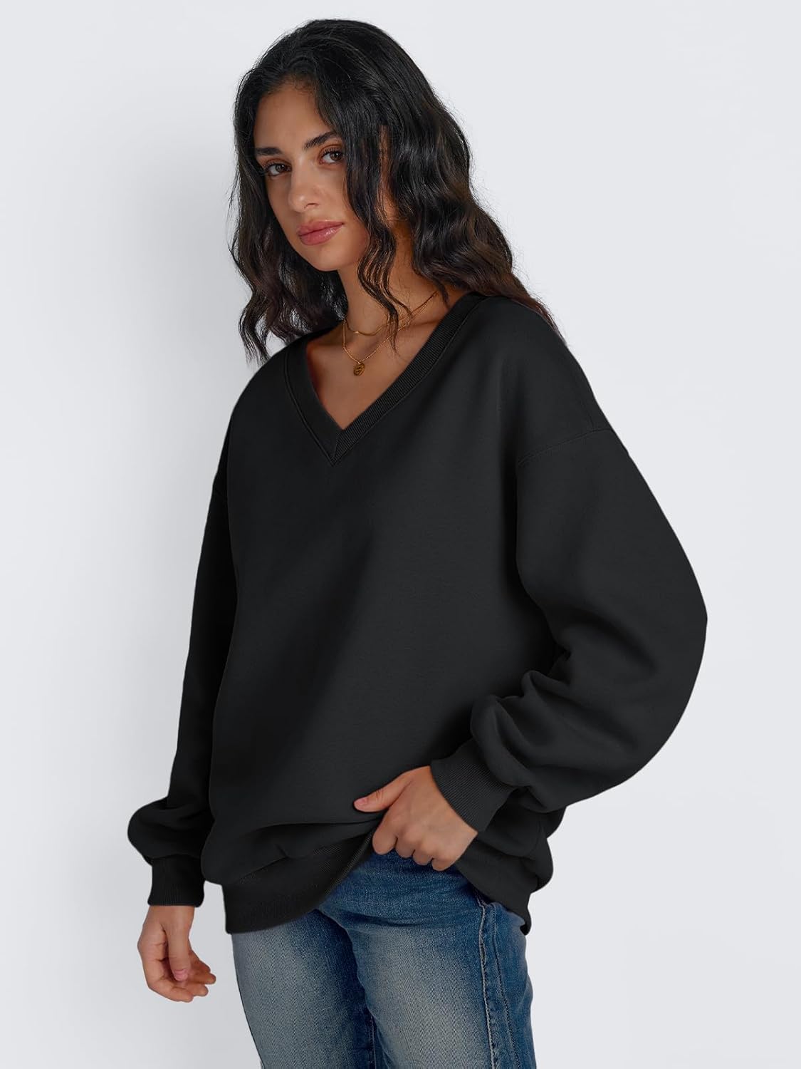 Trendy Queen Womens Oversized Sweatshirts Hoodies Fall Fashion 2024 Outfits Winter Clothes Sweaters Preppy V Neck Teen Girls