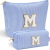 YOOLIFE Initial Makeup Bag | Makeup Bag | Travel Cosmetic Bag | Valentines Day Gifts for Girls | Teen Girl Gifts Trendy Stuff | Birthday Gifts for 4 5 6 7 8 9 10 11 12 13 Year Old Girls | Blue M
