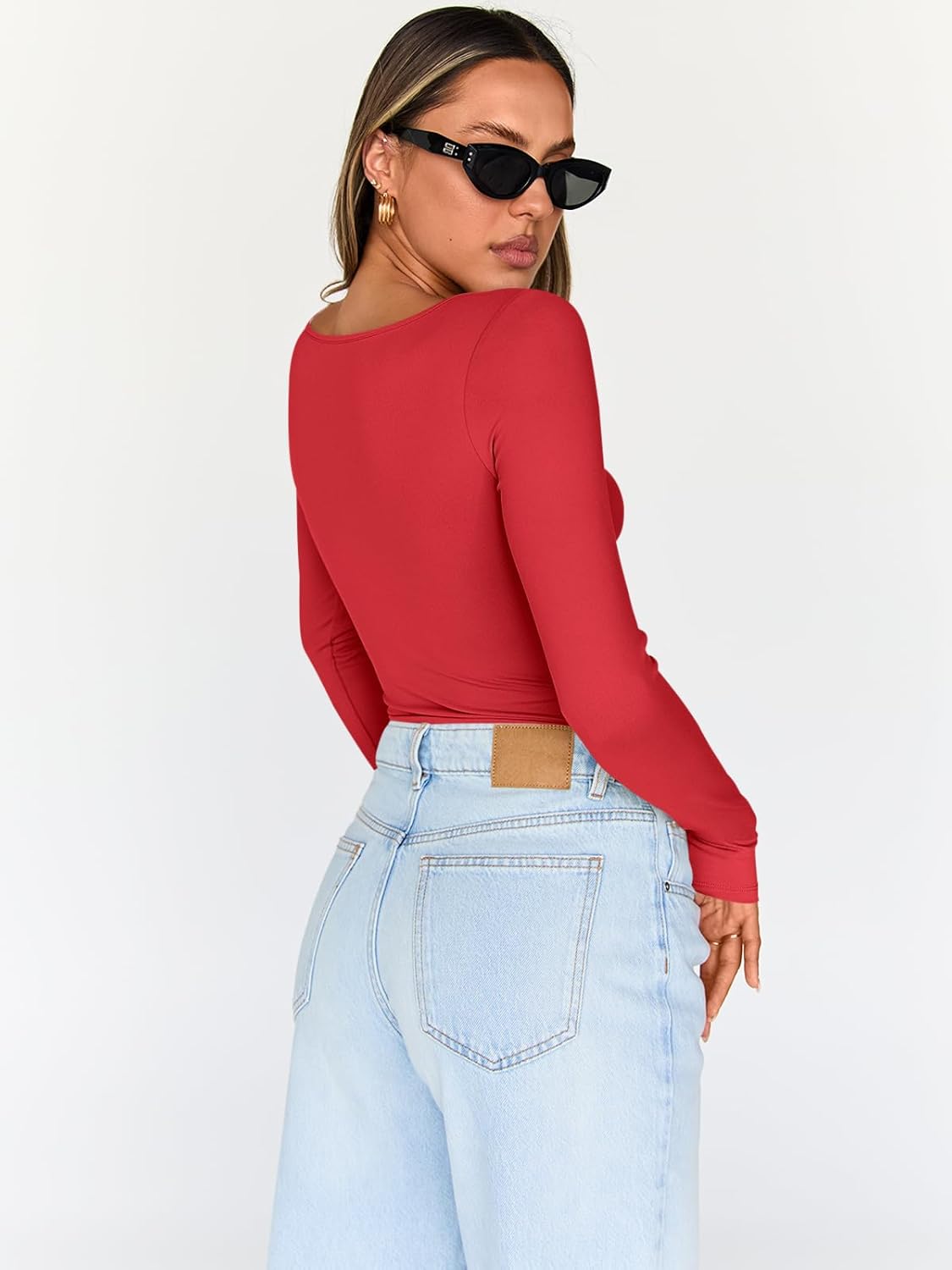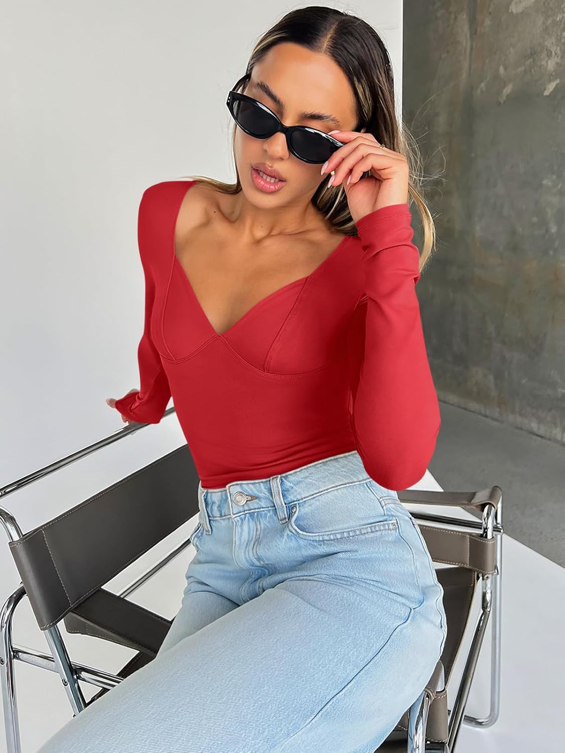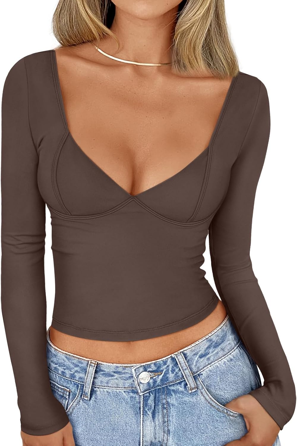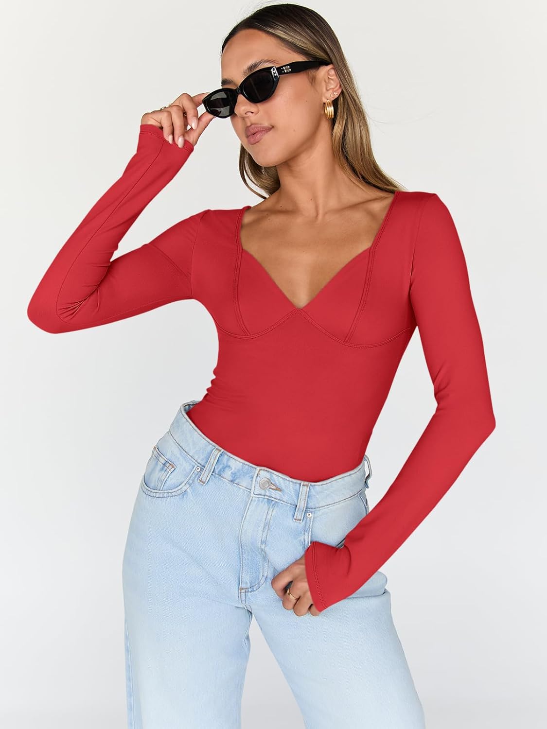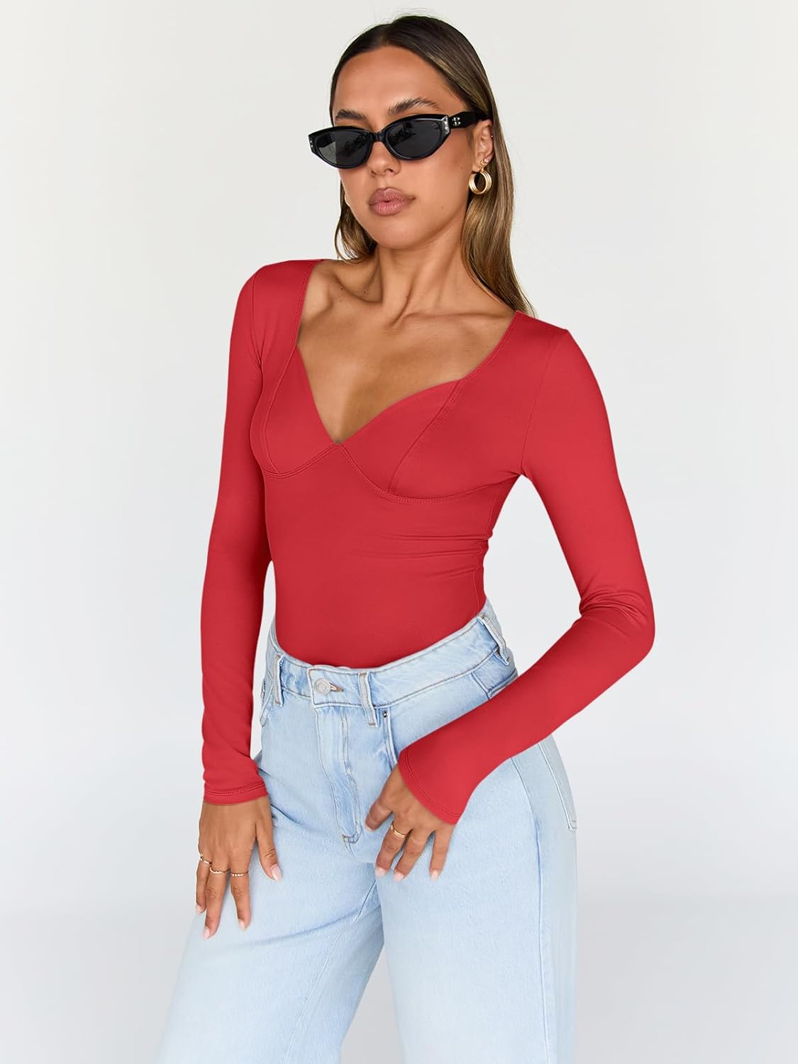 Trendy Queen Womens Tops Trendy Fashion Clothes Going Out Long Sleeve Shirts V Neck Basic Y2K Cute Shirt Slim Fitted Corset