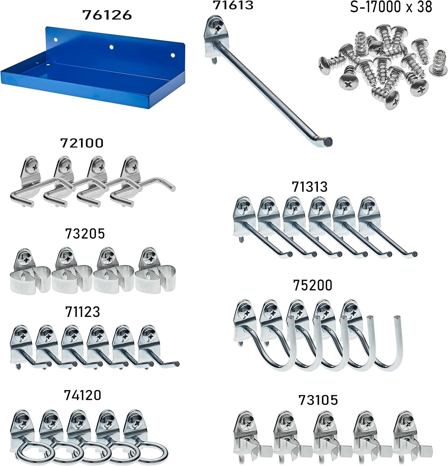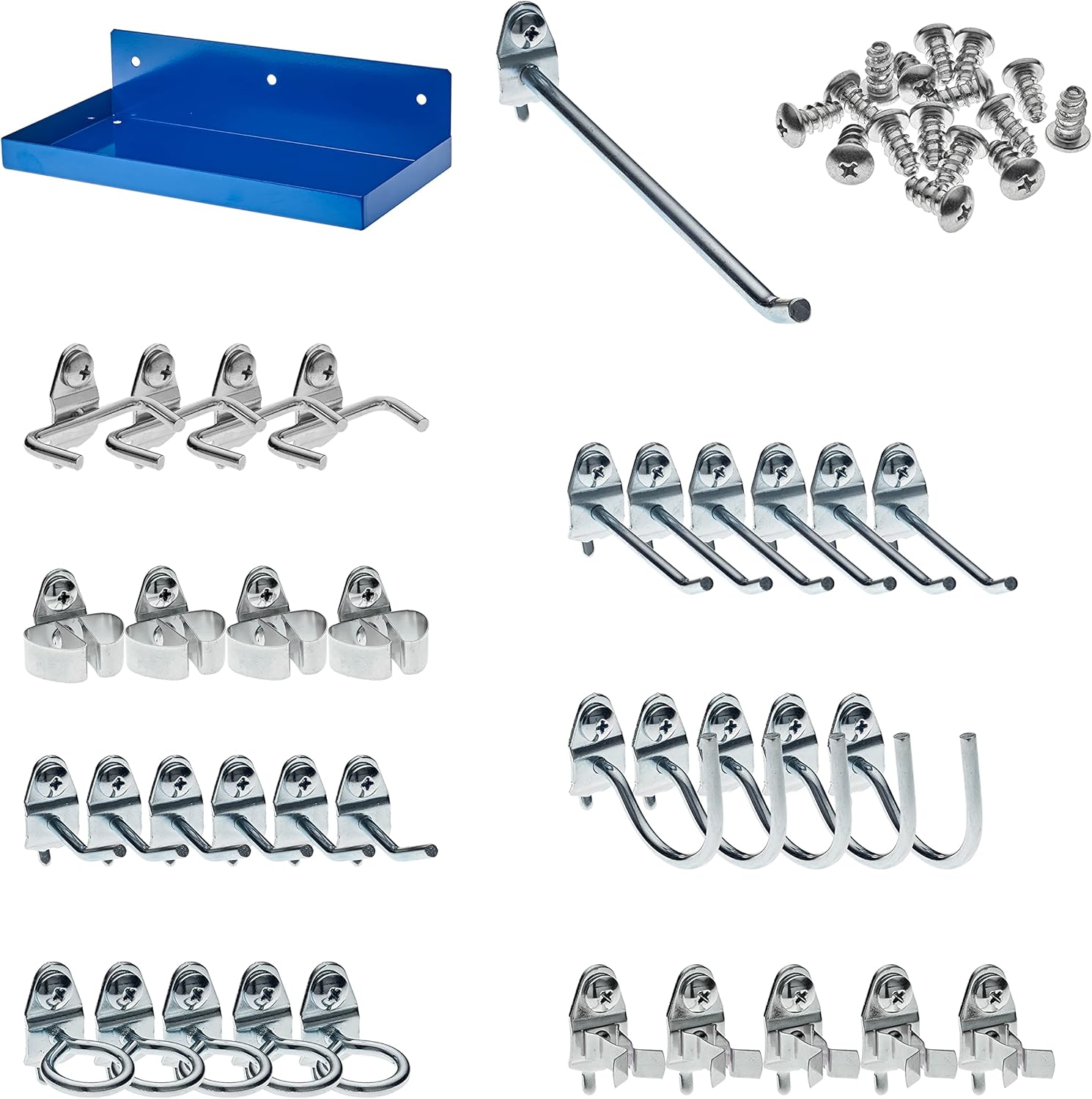 Triton Products 76126-36 DuraHook 12 Inch W x 6 Inch Deep Blue Epoxy Coated Locking Steel Pegboard Shelf with 36 Piece DuraHook Locking Pegboard Hook Assortment
