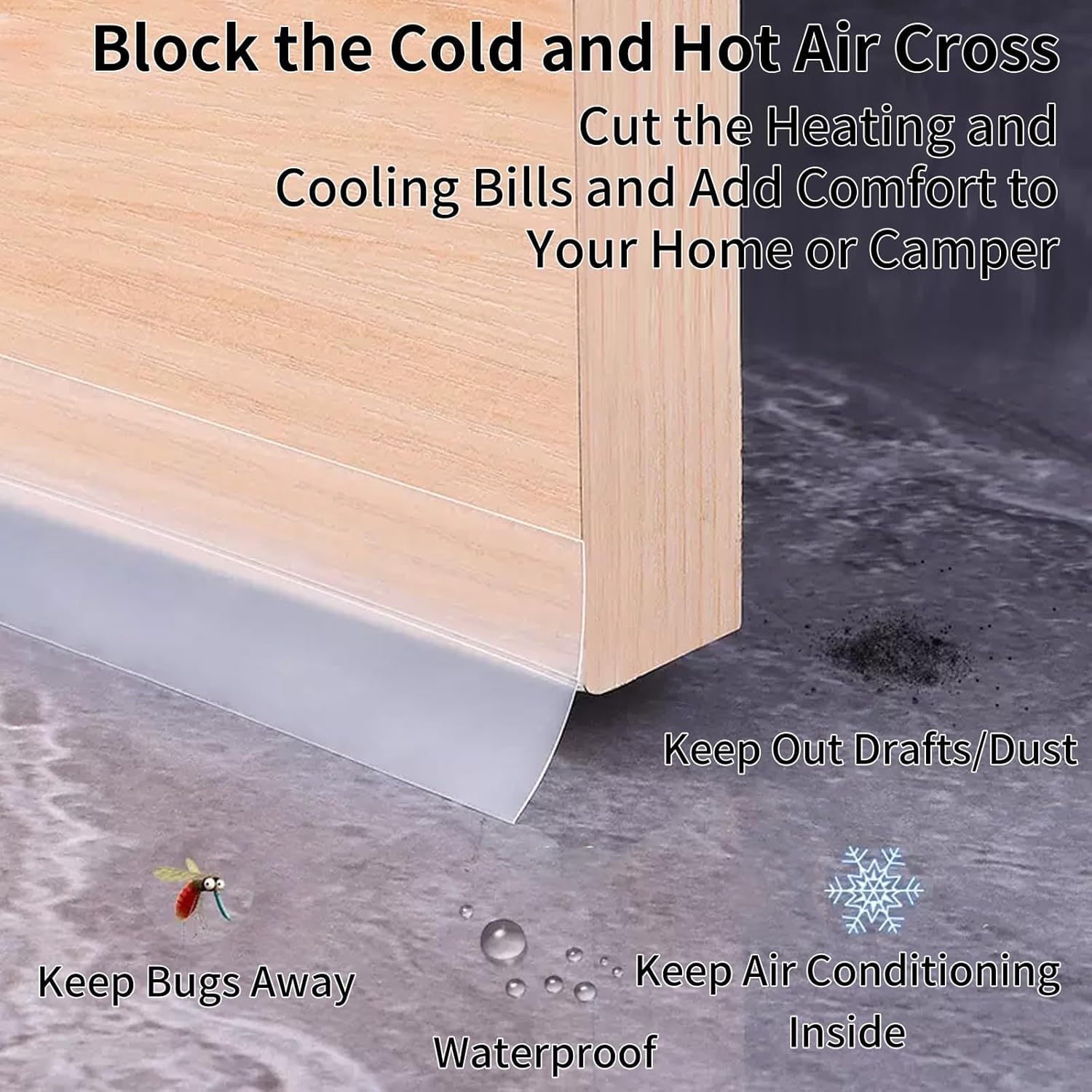 About this itemnSpecially Designed Silicone Sealing Tape: The weather stripping comes as one part adhesive(affixed to door or windows), the other part non-adhesive(to cover the door/window gaps, meanwhile making it possible to open or shut the door any time you walk in or out of the room), stops the heat and cold from escaping during winter and summer. Makes heating and cooling your home or office more efficient and cost effective. A draft stopper for window and doors, windproof and dust proof.nNo More Gaps – Want to cover the door or window gaps? This flexible silicone strip fits gaps from 0.04 inches to 1.2 inches. With high stickiness, the self-adhesive door draft blocker is good for interior doors gaps, garage, basement,and cabinet gaps.nSafe Materials-The door bottom seal strip is made of high resilience waterproof silicone, environmentally protect material no irritating smell, protecting the health of your family. And soft material does not scratch the floor.nEasy To Install- Measure the width of door or window, cut to size, peel the backing off the adhesive and stick it to the door ( Kind reminder, preheat the strip with hairdryer in cold winter to help it stick with better effect.)nWide Application- It is widely used in various types of doors or windows like frameless sliding doors, sliding doors, wood doors, cupboards, glass doors, wardrobes, furniture and shower room, etc.n See more product details