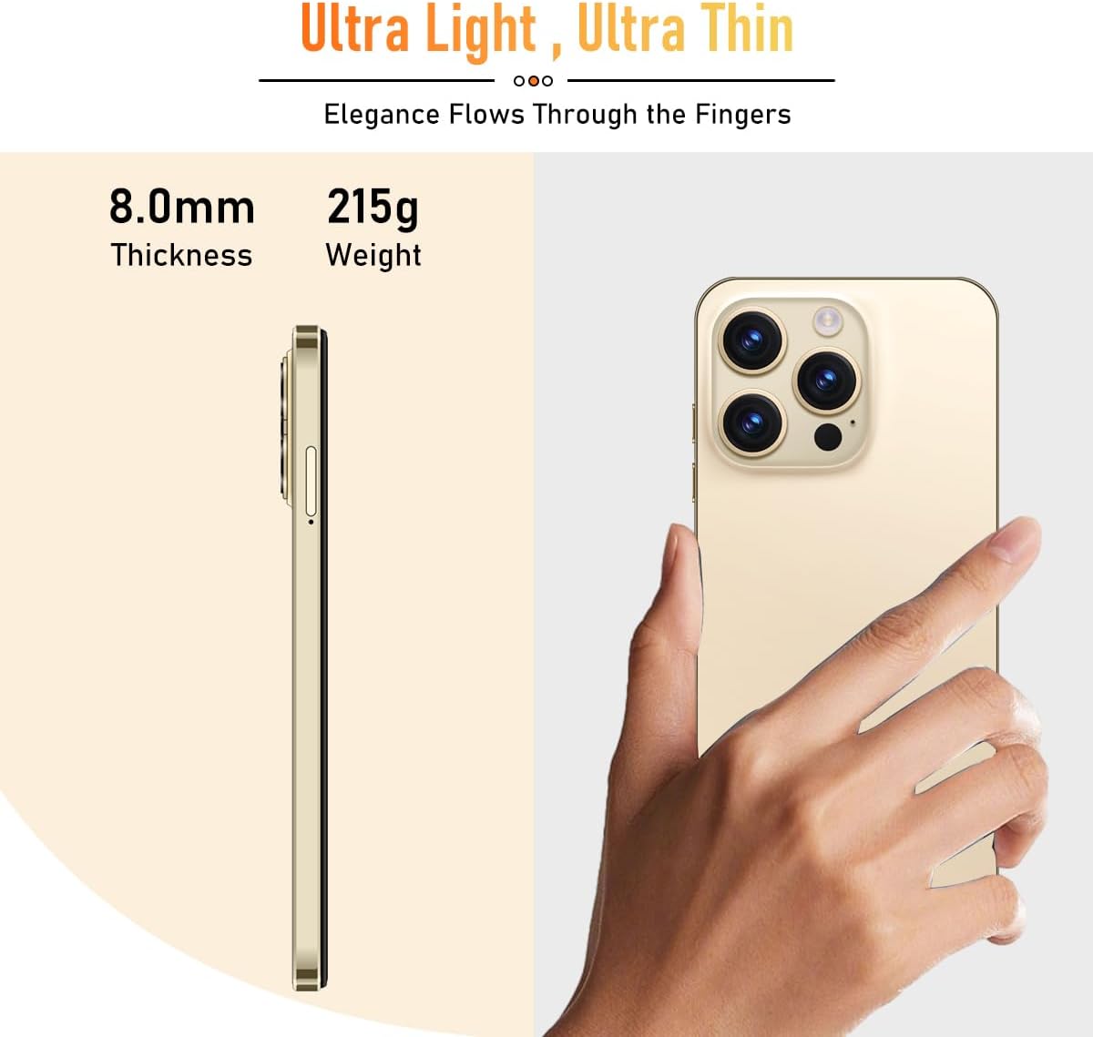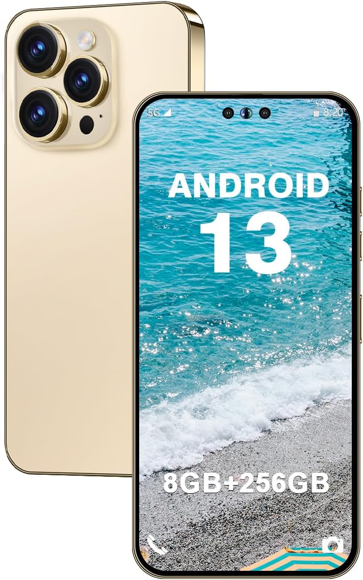 Unlocked Android Phone I14 PROMAX Unlocked Phone 8-core 8GB+256GB Cell Phone 50MP+24MP Camera Pixels 6800mAh Battery for Extended Standby 6.7inch HD Screen Mobile Phone 5G Dual SIM (Gold)