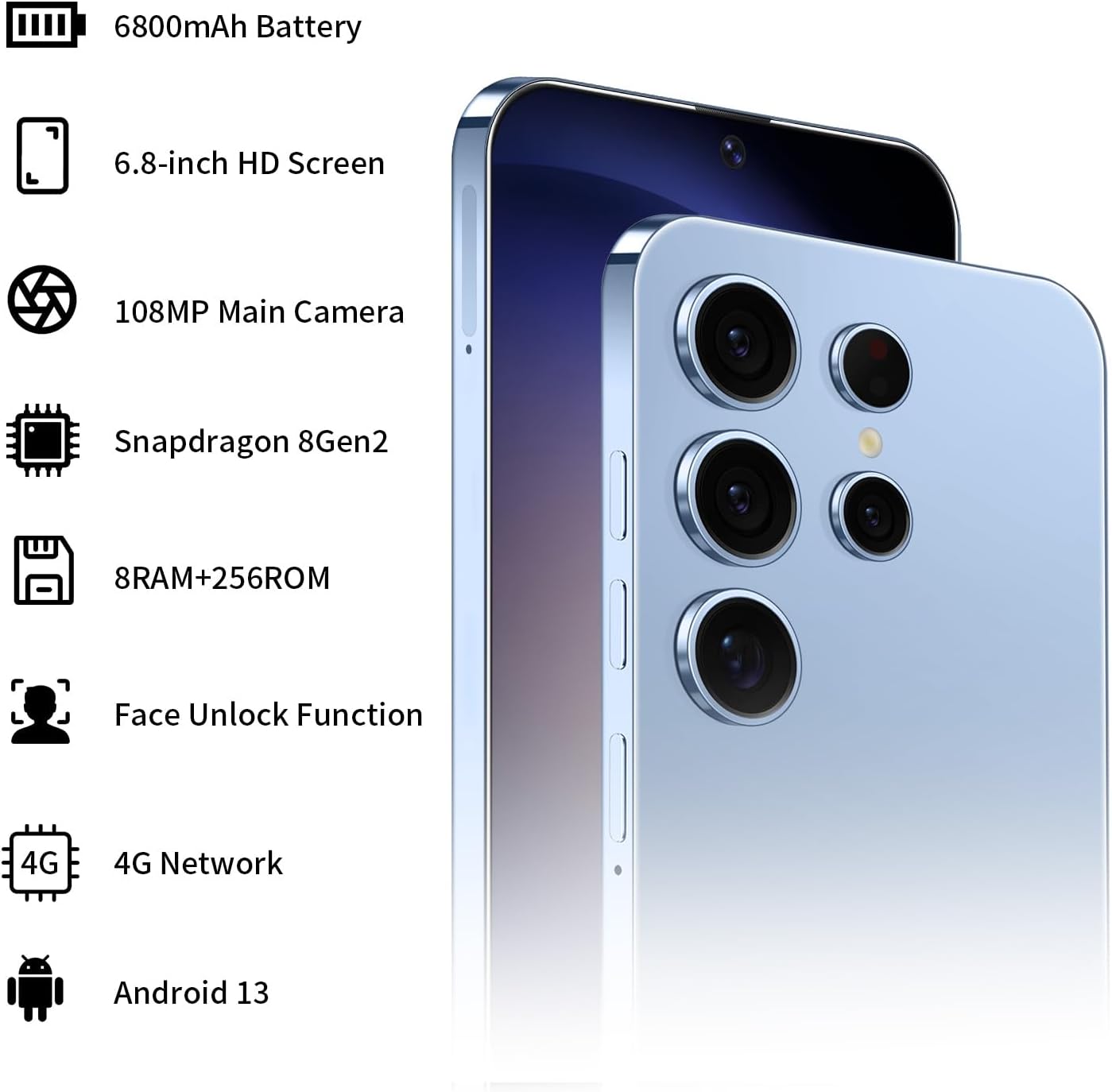 Unlocked Android Phone S23 Ultra Cellphone Android 13 Smart Mobile Phone 8-core 8GB+256GB Cell Phone 6.8 inch HD Screen Mobile Phone 108MP+48MP Camera 6800 mAh Battery 4G Dual SIM (Blue)