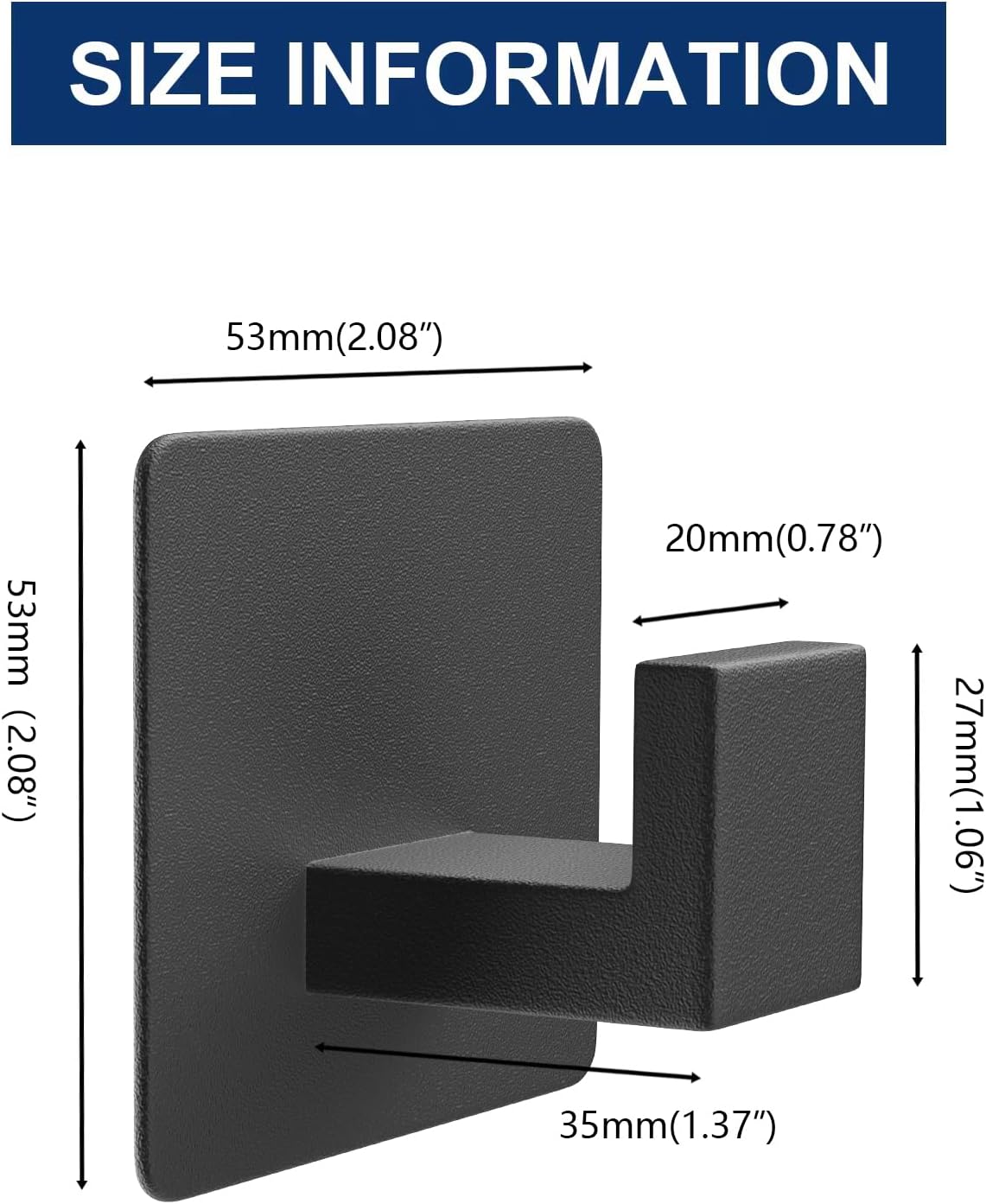 About this itemnNOT APPLICABLE SURFACES ?Painted wall, limestone wall, wall paper or uneven surfacesnAPPLICABLE SURFACES ?Must be smooth surface such as wooden ,ceramic tiles, marble stone, metal, glass etcnHIGH LOADING CAPACITY : Heavy duty hook with strong adhesion. (Tip: Please do not hang fragile and valuables)nEASY TO INSTALL AND REMOVE: No need to drill, just remove the protective film on the back of the adhesive hook, and then press for a few minutes, you can hang things on it after 24 hoursnDURABLE?The Adhesive hook is made of space aluminum. They offer a stable, high load bearing capacity and quick drainage, making them long lastingnMODERN DESIGN WITH MULTIPLE USES?These stylish black hooks not only offer functionality but also enhance your home decor. They’re perfect for storing everyday household items like cooking tools, umbrellas, towels, coats, keys, and more. Add a touch of modern design to your living space with these versatile hooks.n› See more product details