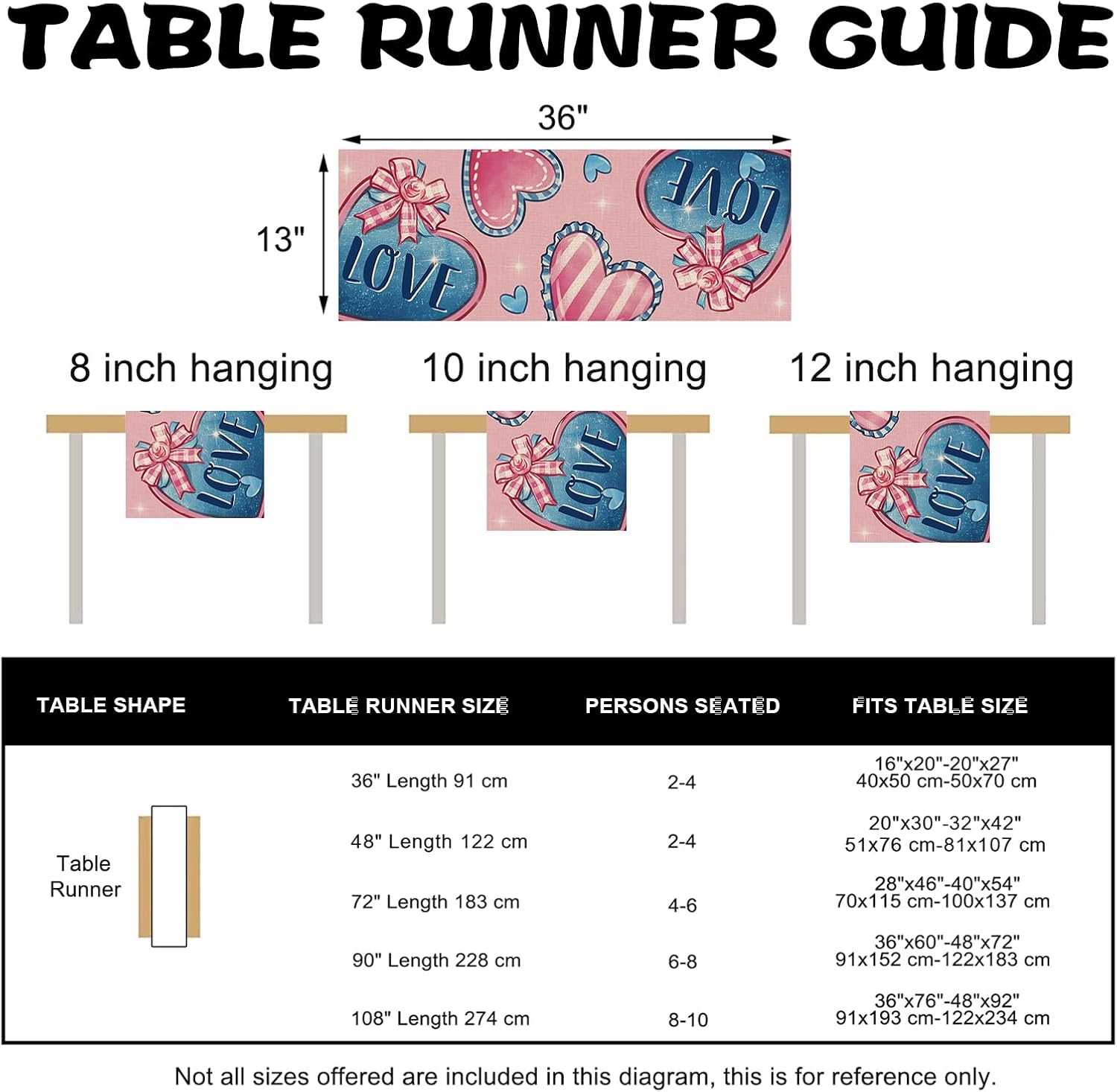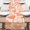 About this itemnPolyesternUniquely Designed Table Runner: Our rustic tabletop runner is designed with the current elements to add style and vibrancy to your home. Table runner is printed with vivid love hearts, rose, bow patterns, which is the perfect decoration for Valentines Day. Express your positive outlook on life by decorating your coffee table, dining table, buffet and kitchen with our seasonal table runners in a variety of themesnHigh Quality Table Decor: Made of 100% spun polyester, this stylish table scarf is durable and eco-friendly. 13