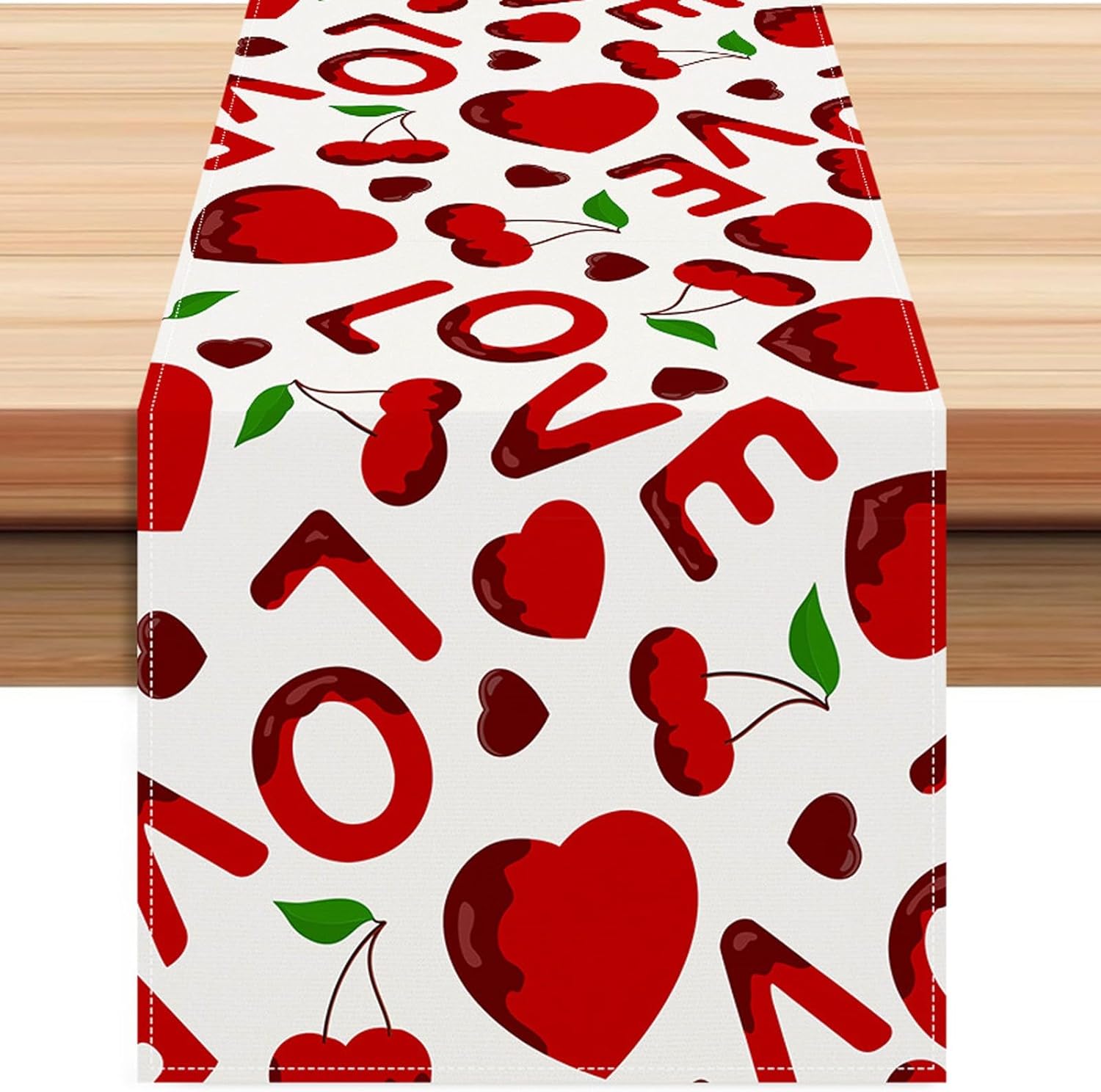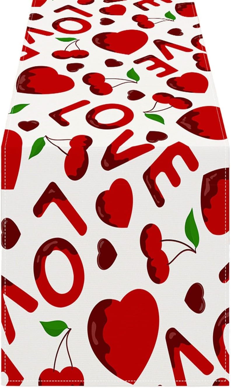 Valentine’s Day Table Runners 72 Inches Long, Eucalyptus Plaid Red Pink Love Heart Table Runner Anniversary Wedding Holiday Kitchen Dining Table Decoration for Indoor Outdoor Home Party Decor (#020)