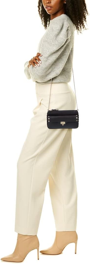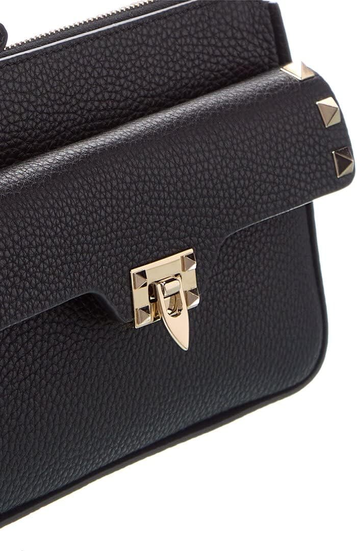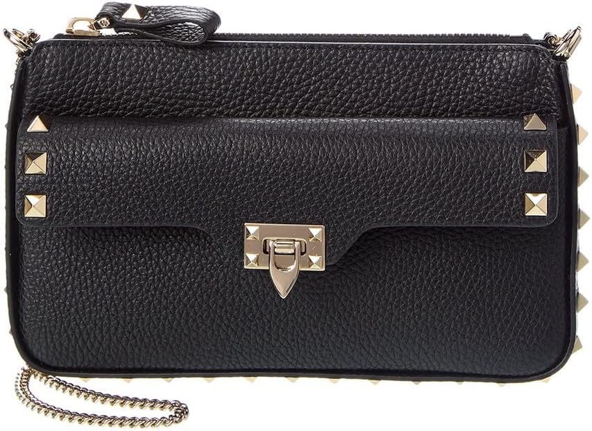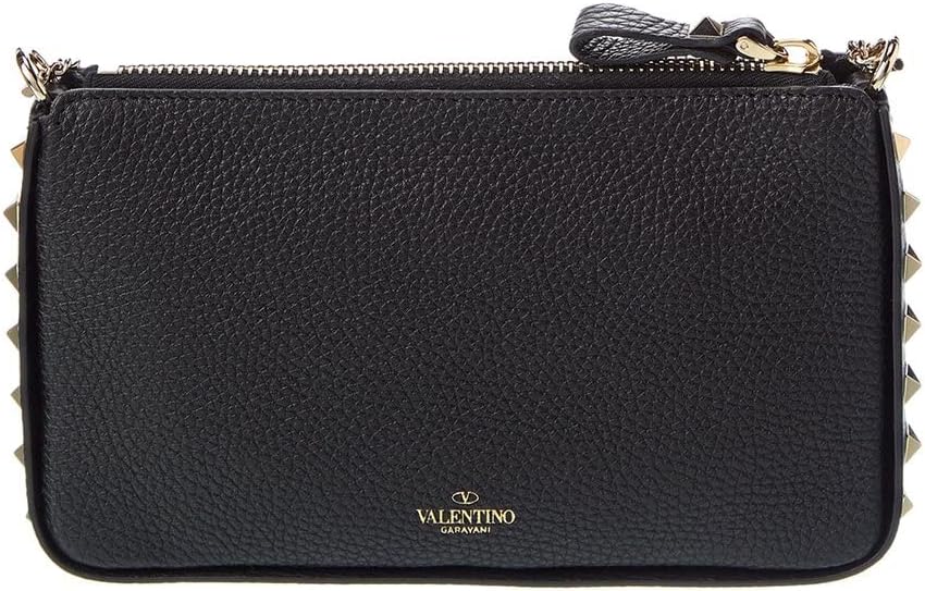 Valentino Rockstud Grainy Leather Wallet On Chain, Black