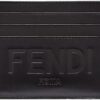 FENDI Roma Black Calfskin Leather Embossed Logo Card Case Wallet 7M0164
