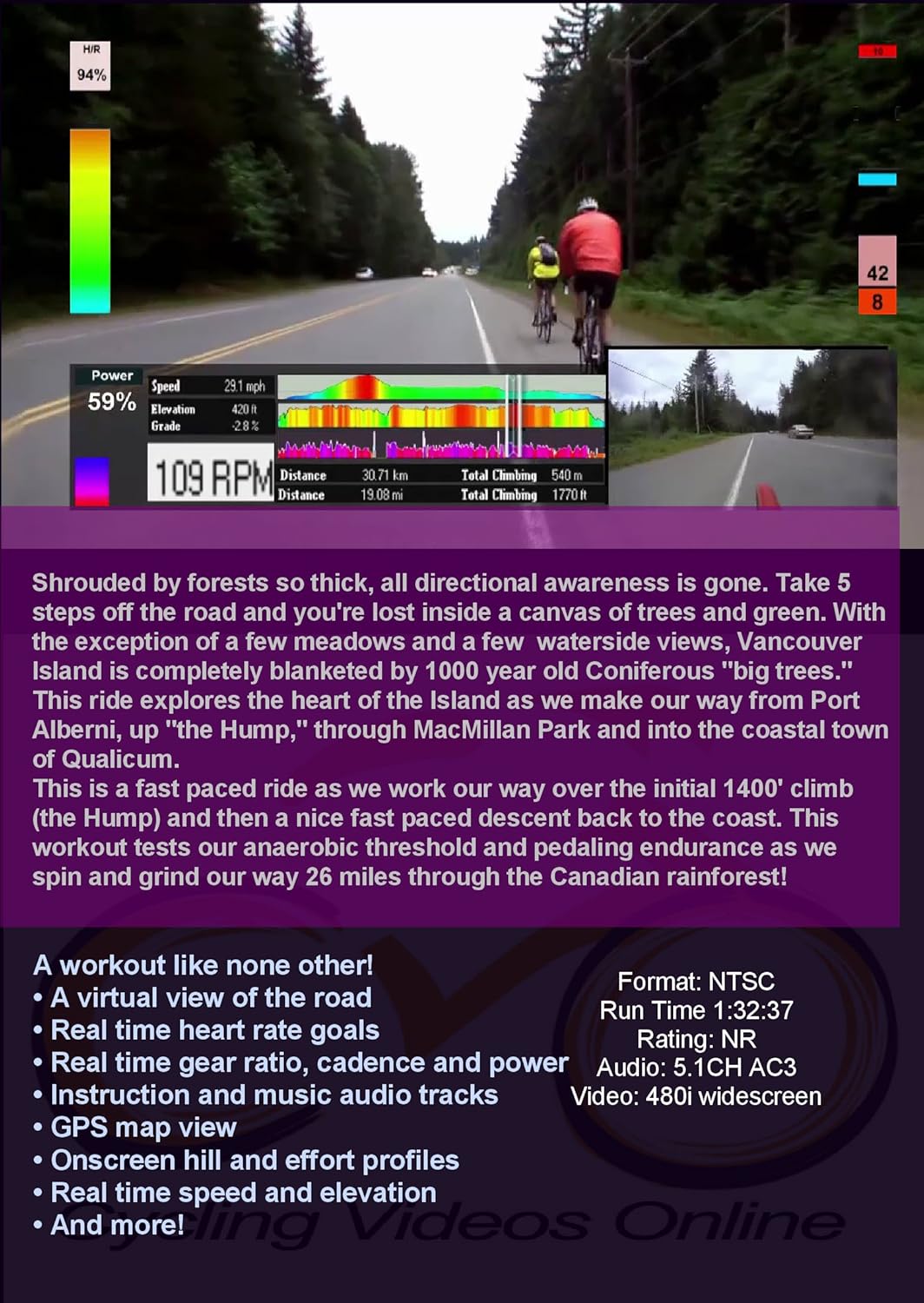 Vancouver Island B.C. Indoor Cycling – Mystic Forest Climb (Port Alberni to Crofton) – 2.5 Hour Power Workout