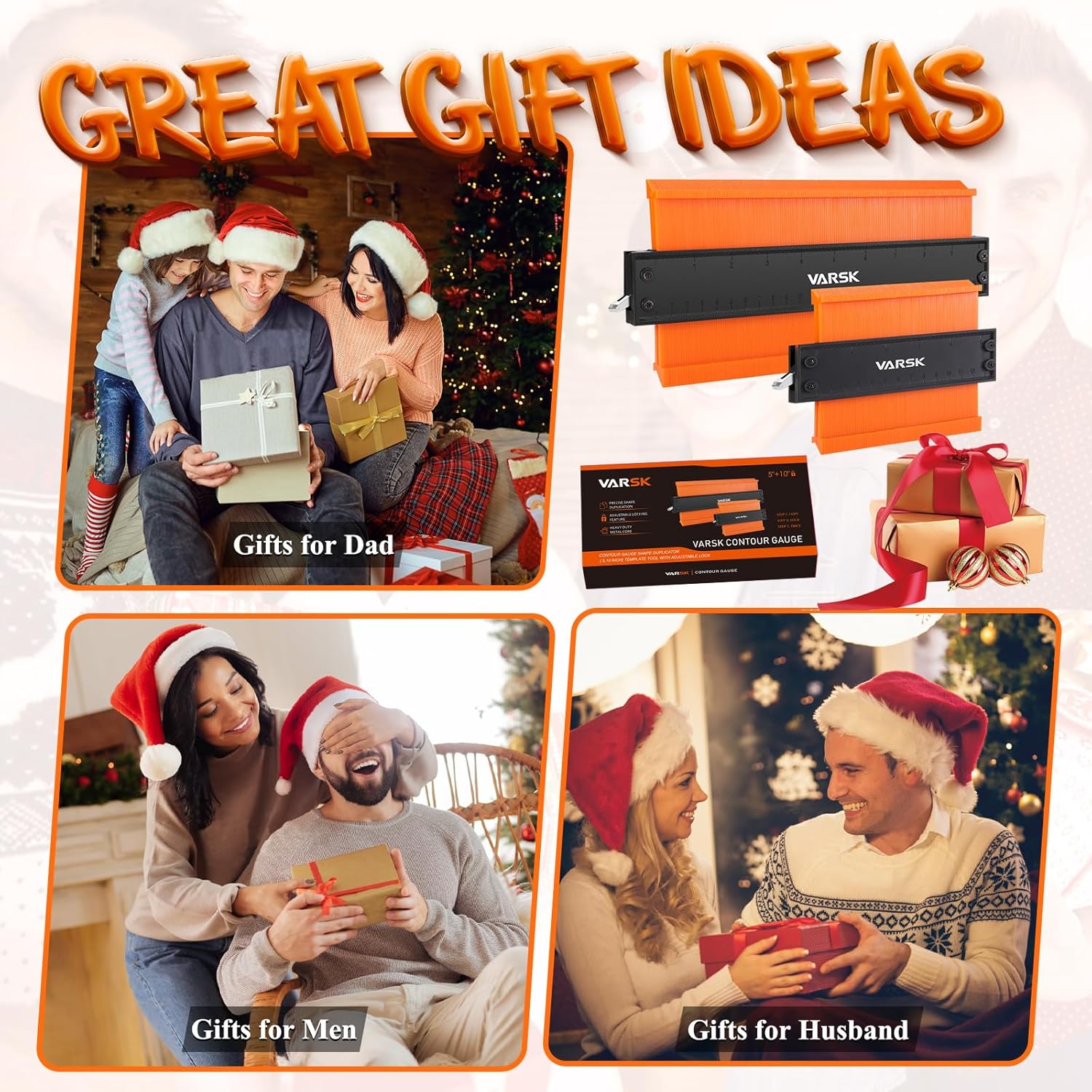 VARSK Contour Gauge Tool with Lock 5+10 Inch – Cool Gadgets for Men, Measuring Scribe Profile Tool, Birthday Gifts for Men Dad Him, Tools for DIY Handyman, Woodworking Tools for Measuring Flooring