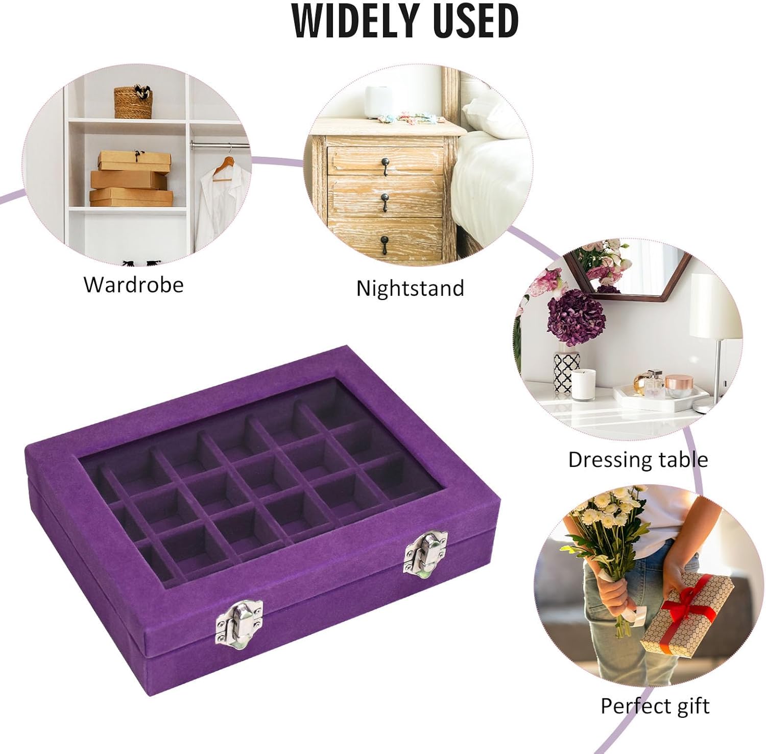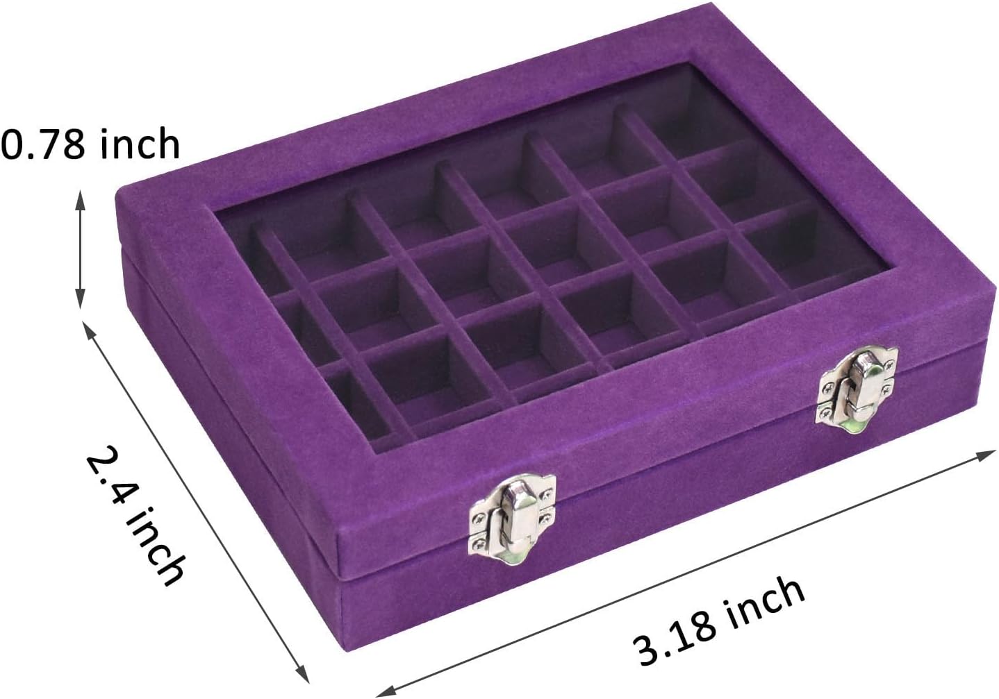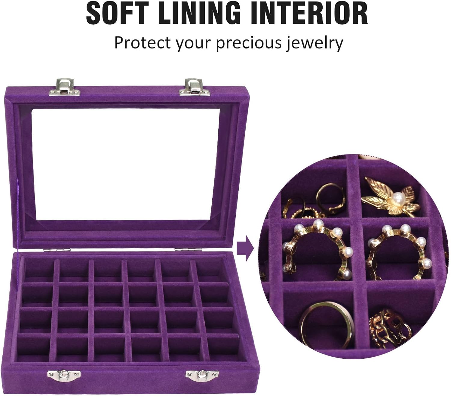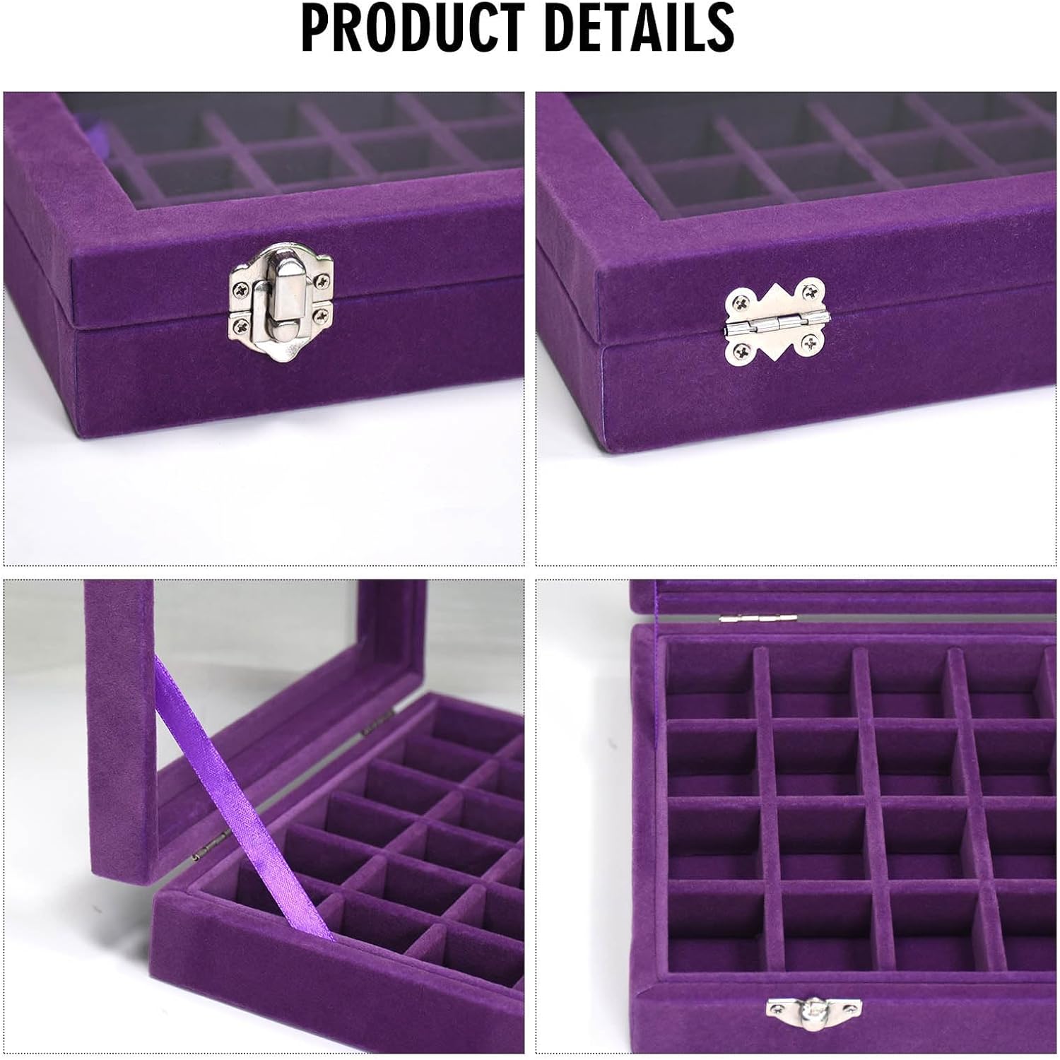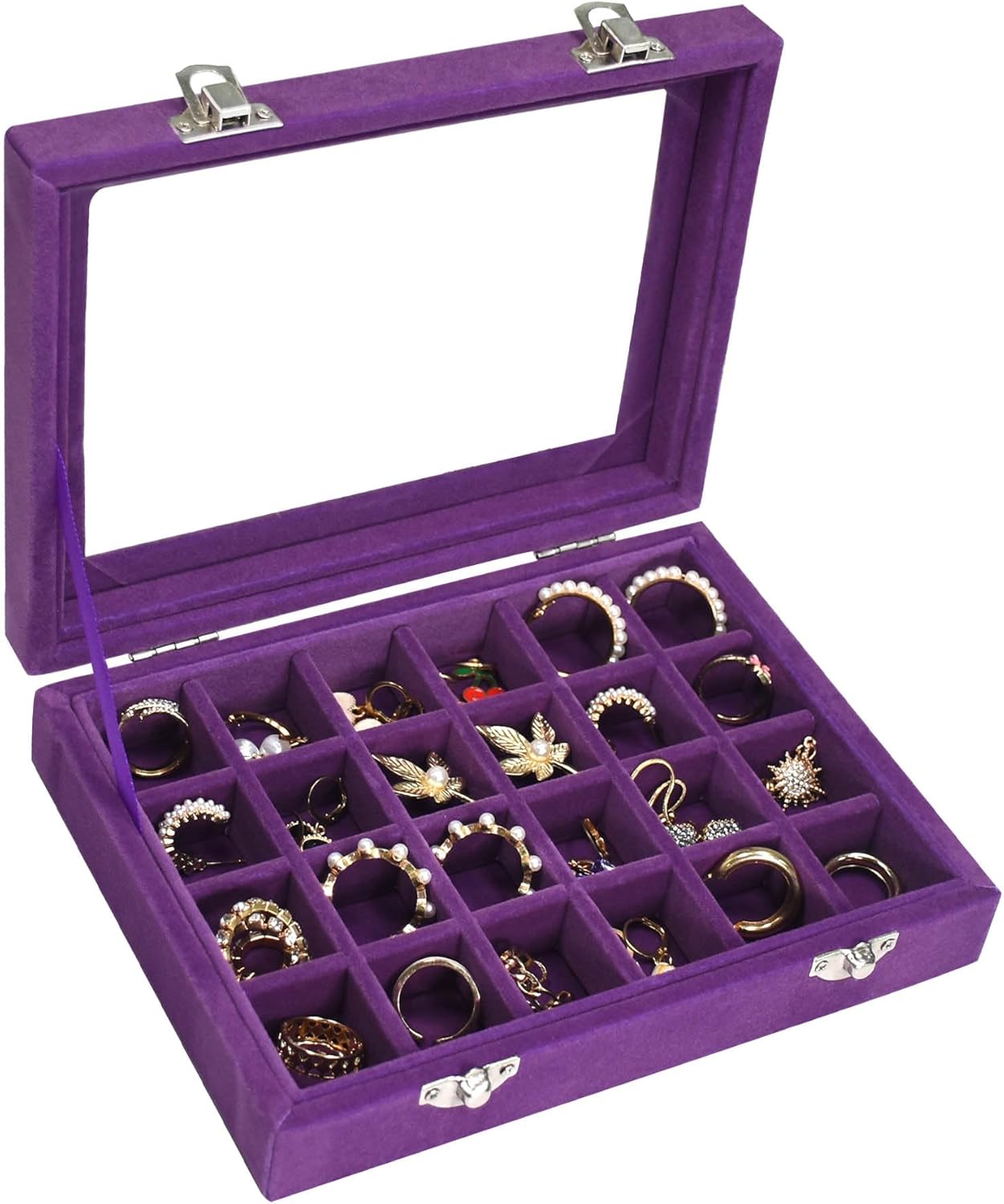 Velvet Jewelry Box 24 Grid Jewelry Ring Display Organiser Box Tray Holder Earrings Storage Case for Girls Wife Mom Women (Purple)