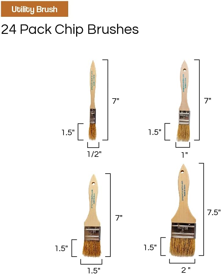 Vermeer Chip Paint Brushes – 24-Pack Chip Brushes in Assorted Sizes for Paints, Stains, Varnishes, Glues, & Gesso – Home Improvement – Interior & Exterior Use