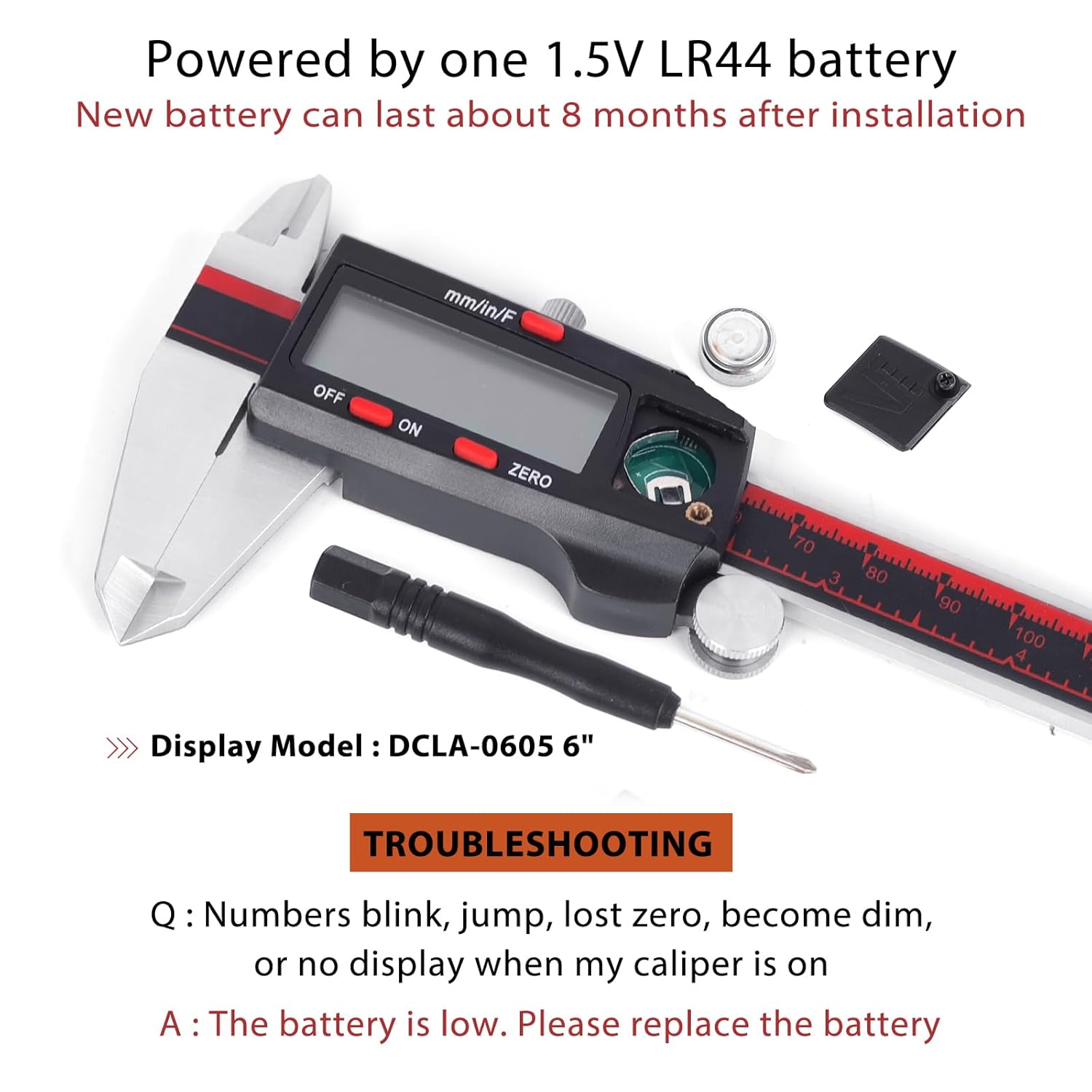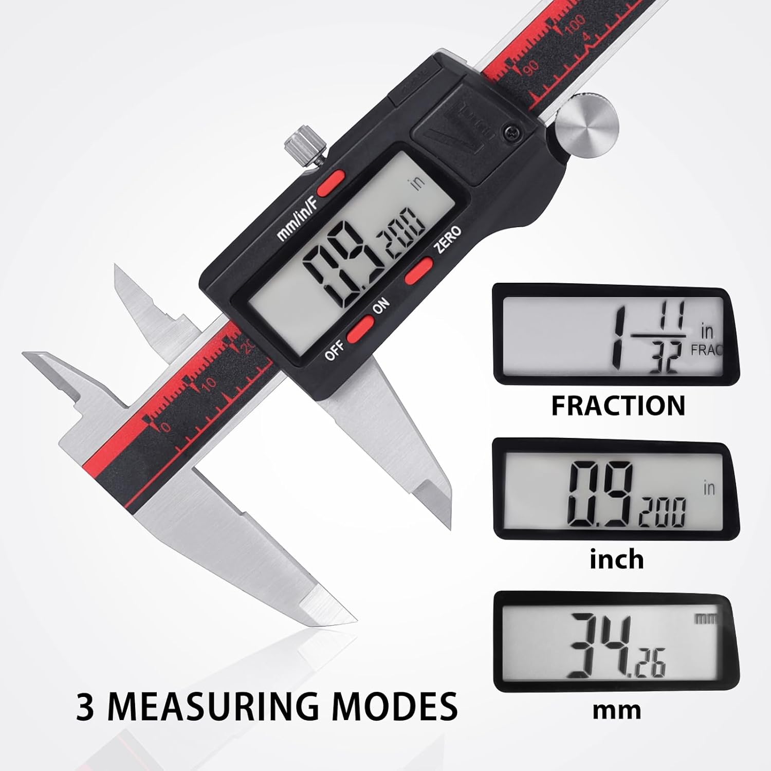 About this itemnStainless steel digital caliper with inch/metric/fraction conversion; Home DIY and professional use are both highly recommendednFine polished stainless steel and advanced processing of depthometer’s groove give better looking, smooth sliding, and accurate resultnMeasure Range: 0-6 inches/150mm; Display: 1/2