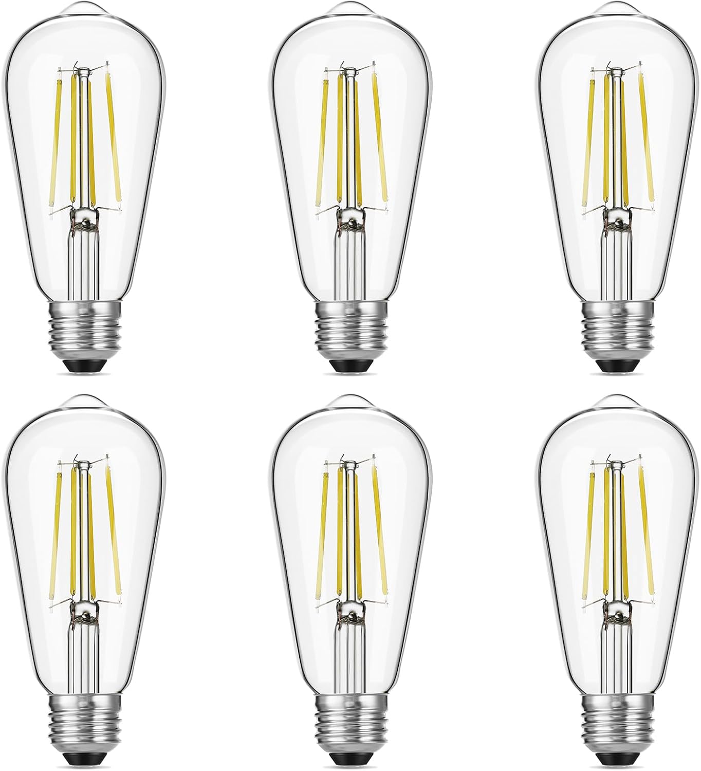 Vintage LED Edison Bulbs, 6W, Equivalent 60W, High Brightness Daylight 5000K, ST58 Antique LED Filament Bulbs with 90+ CRI, E26 Medium Base, Dimmable, Clear Glass, Pack of 6