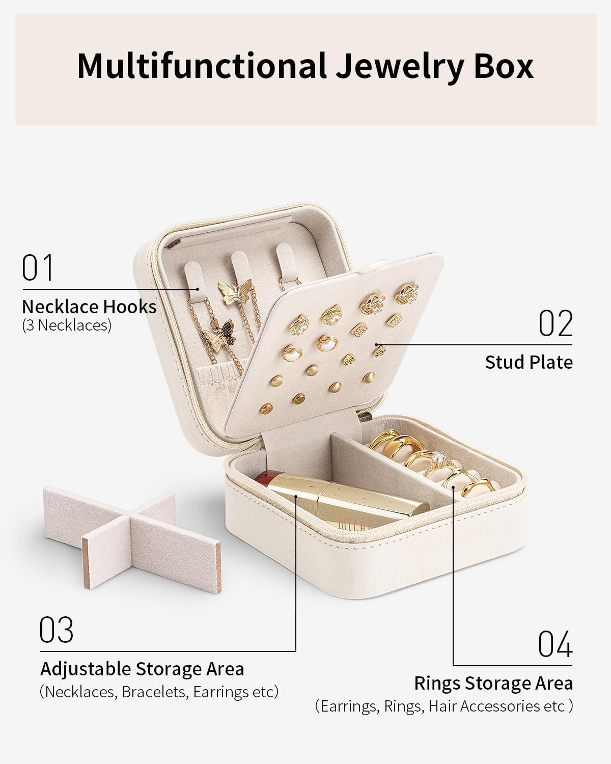 Vlando Travel Jewelry Case, Small Travel Jewelry Organizer Box for Girls Women – White