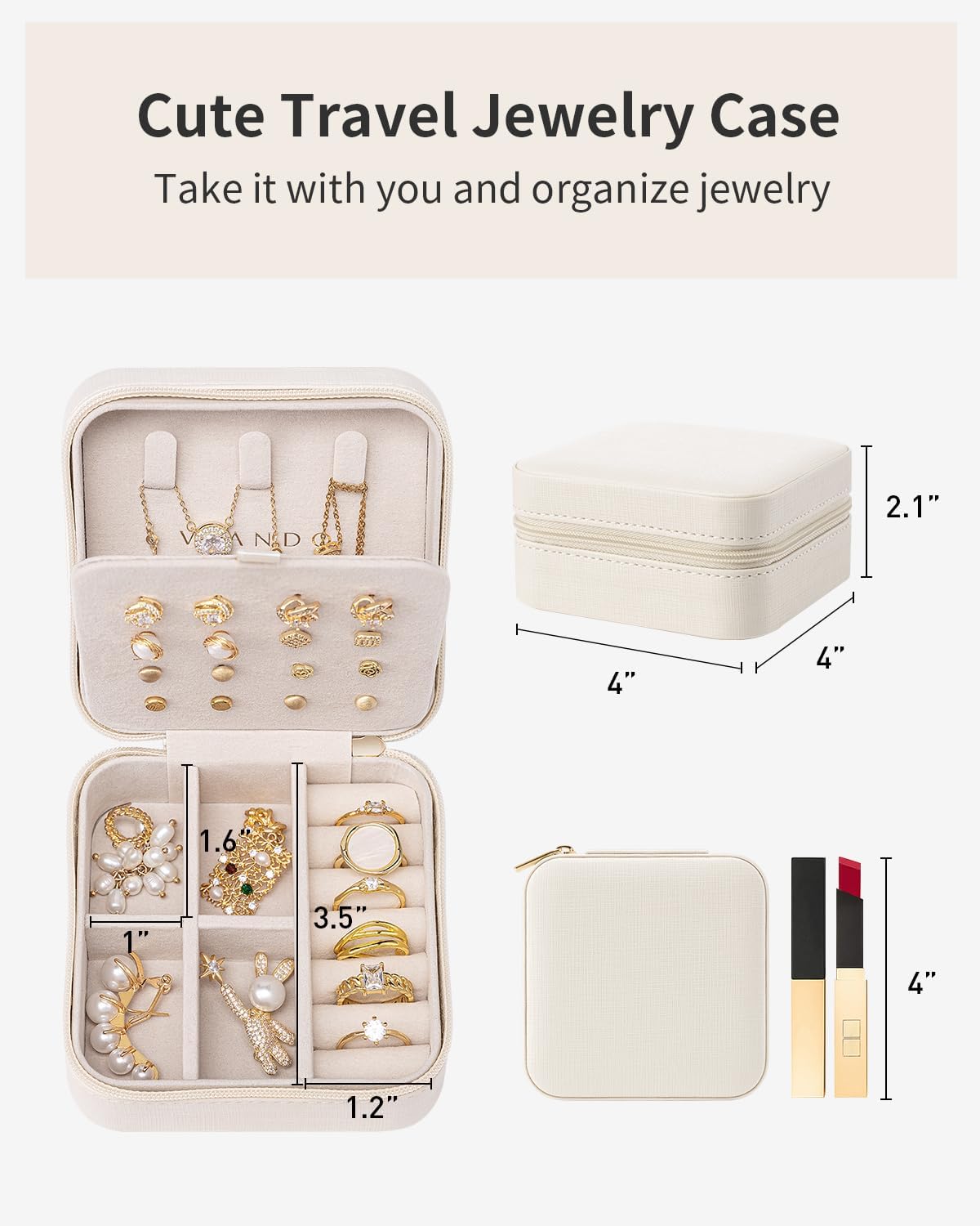 Vlando Travel Jewelry Case, Small Travel Jewelry Organizer Box for Girls Women – White