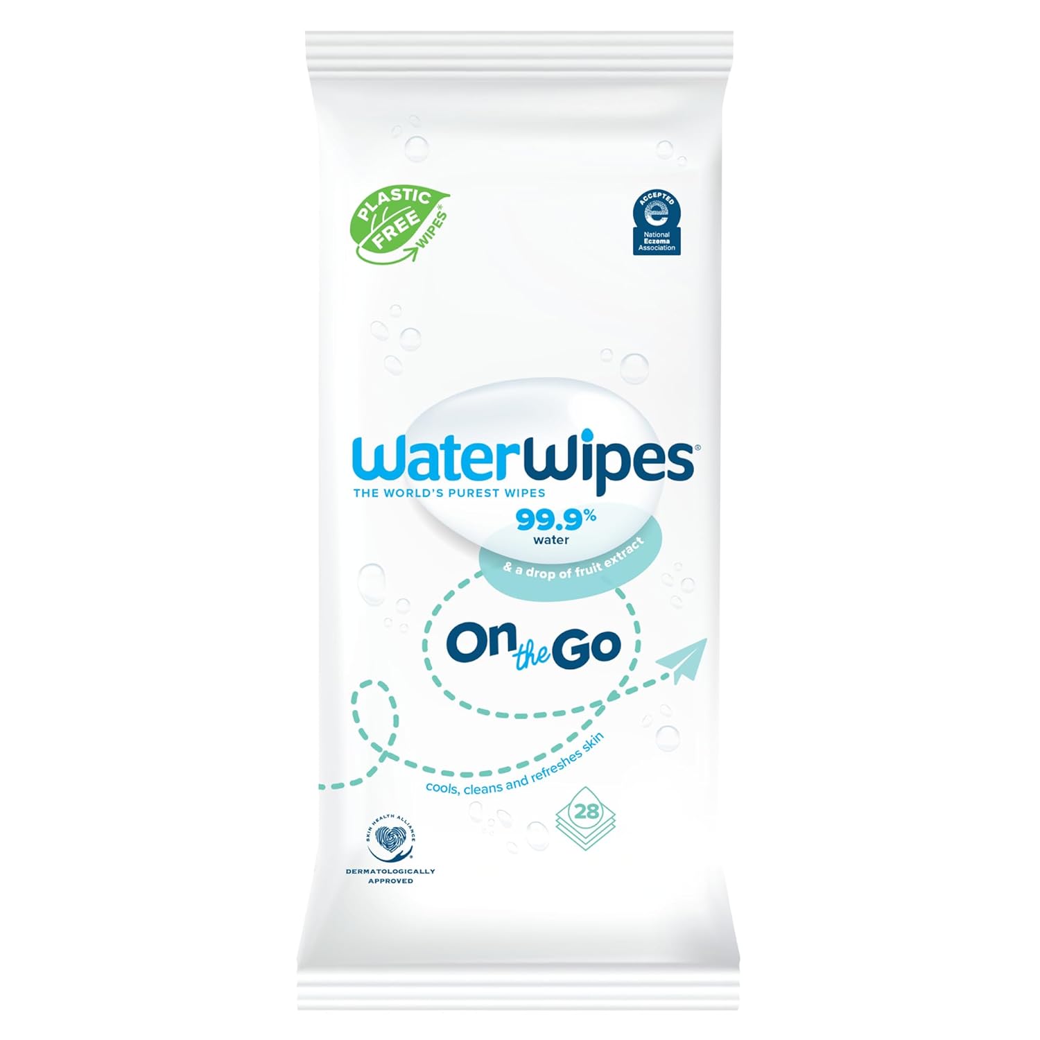 WaterWipes On The Go Wipes, 99.9% Water-Based Wipes for Travel, Sports, and to Refresh Skin, Unscented & Hypoallergenic, 28 Count (1 Pack)