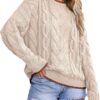 EVALESS Sweaters for Women Trendy Crewneck Long Sleeve Color Block Sweater Tops Fall 2024 Chunky Cable Knit Pullover Sweaters