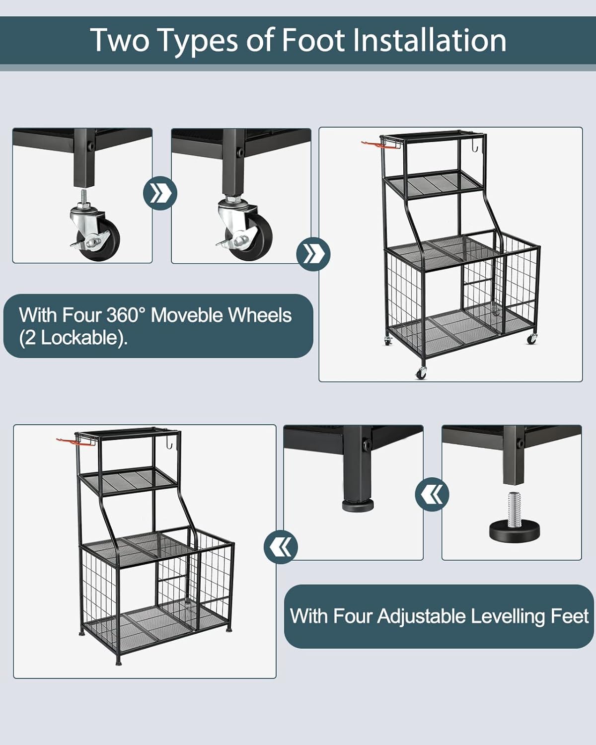About this itemnALL-IN ONE GYM STORAGE RACK : This multi-functional weight rack can storage all kind of fitness equipment in home, let your gym space stay organized. Such as yoga fitness mats, dumbbells, kettlebells, foam rollers, yoga straps, pilates bars, jump ropes etc.nSTURDY AND DURABLE & EASY TO ASSEMBLE : Workout equipment storage rack is made of high-quality metal, lock with screws, not easy to rust and corrode for durability. The weight stand can bear 400 lbs. There is an assembly video in the instruction manual.nUNIQUE DESIGN : Side storage yoga mat and foam roller, the other side is gravity hook can hang 60 lb fitness accessories. 4 layers rack can organize different fitness equipment as your need. Tips: hooks surface have non-slip rubber coating.nMOVING WHEELS & FOOT PAD : Home gym storage rack wheels roll well and strong load-bearing capacity, wheels can move and lock it .You can easily move the storage cart anywhere you want. Or assemble 4 foot pads, the stand will be more stable.nDIMENSION &: 34 inch(L)*16.5 inch(W)*46.6 inch(H). The exercise equipment storage is perfect for the living room, home gym and garage.